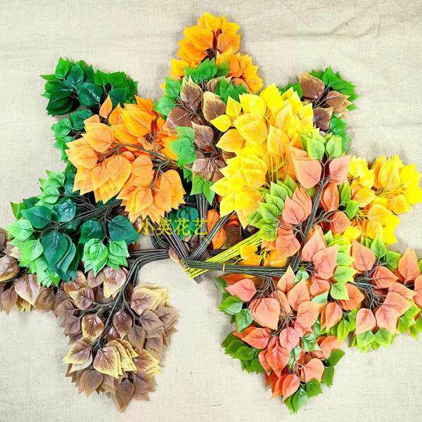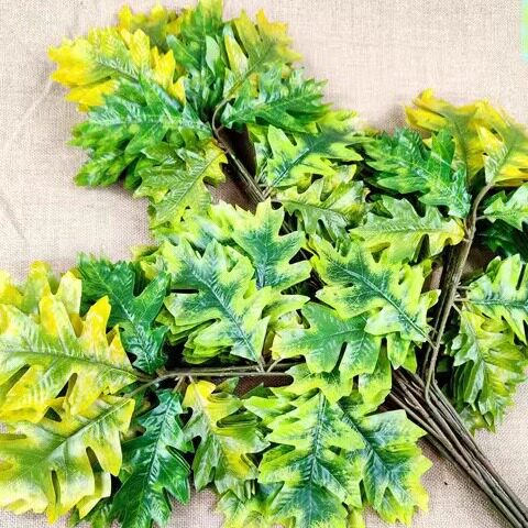 仿真橡树叶彩色树叶樟树叶枫叶榕树叶绿植园林背景插花装饰桦树叶