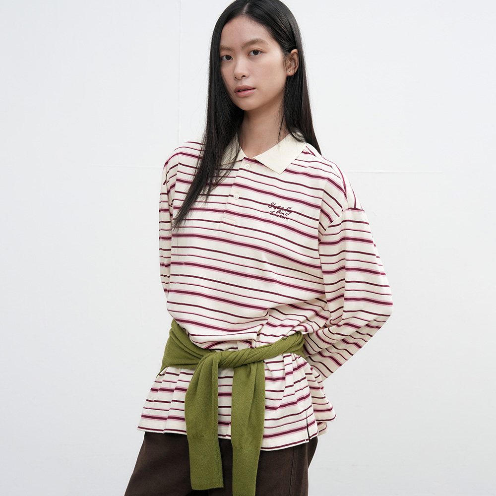 --------------------- 【现】General idea运动复古条纹POLO领T恤长袖休闲宽松韩上衣女 【原售价】378元 【现售价】249元 【推荐理由】