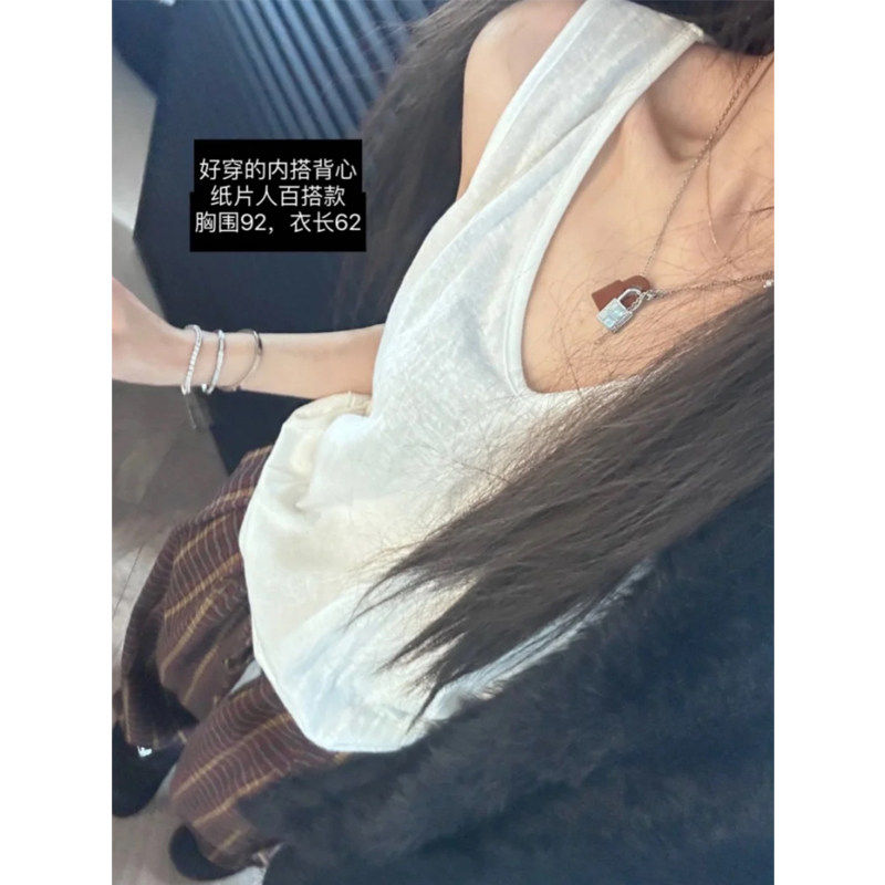 叠穿无袖上衣2025春夏u领吊带内搭宽松休闲 内搭衣女白色棉麻背心