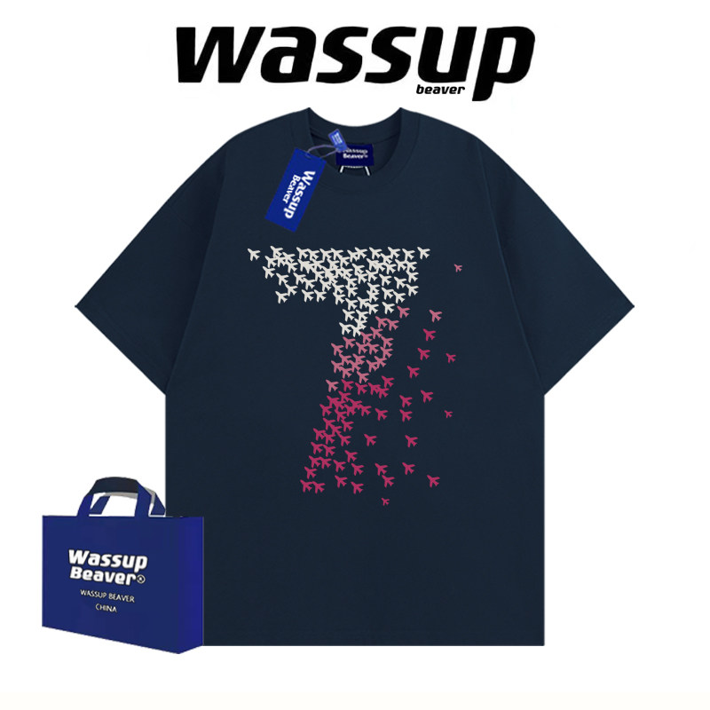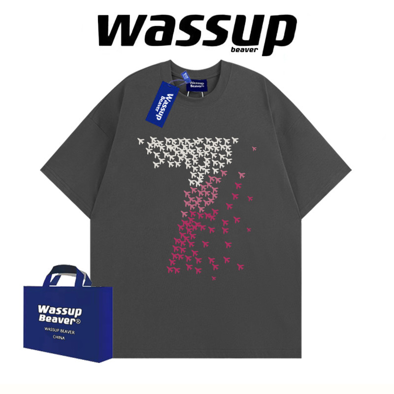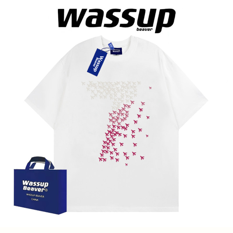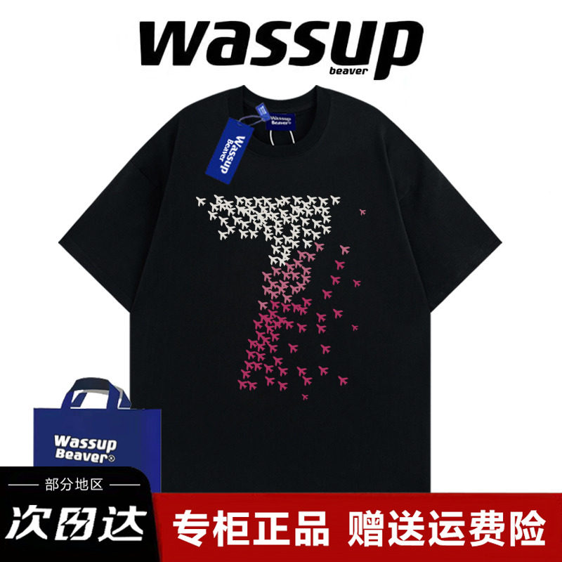 WASSUP BEAVER重磅美式潮牌纯棉印花夏季宽松短袖t恤半袖新款上衣