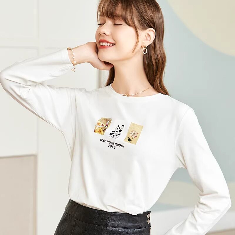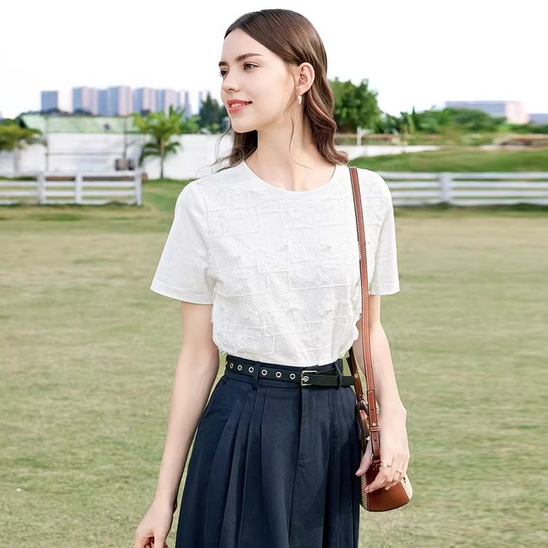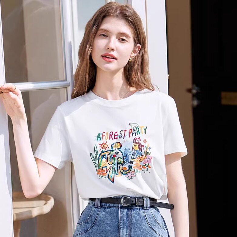 百图女装减龄短袖T恤圆领立体印花短款设计感上衣年夏季新款