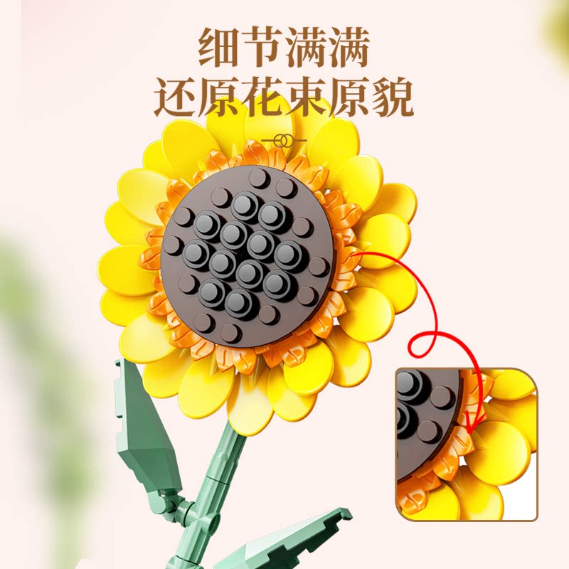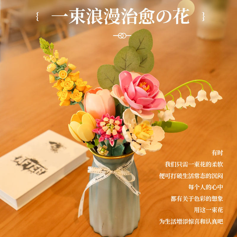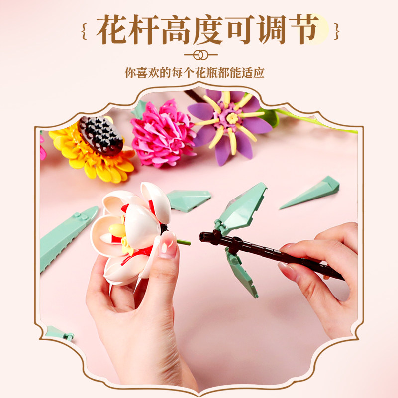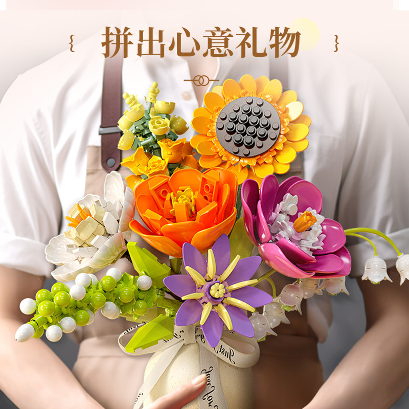 费米积木花束拼装积木玩具永生花办公室摆件送女朋友生日礼物