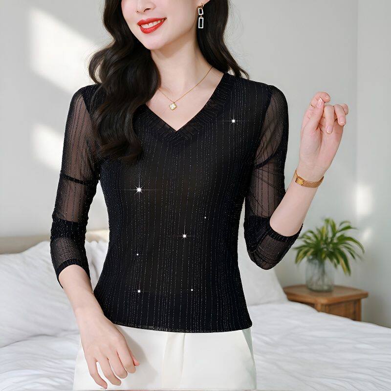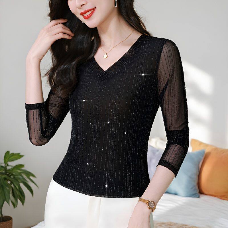 --------------------- 优雅减龄网纱T恤小衫女2026春秋季修身显瘦打底衫高级感蕾丝上衣 【原售价】238元 【现售价】59.9元 【推荐理由】