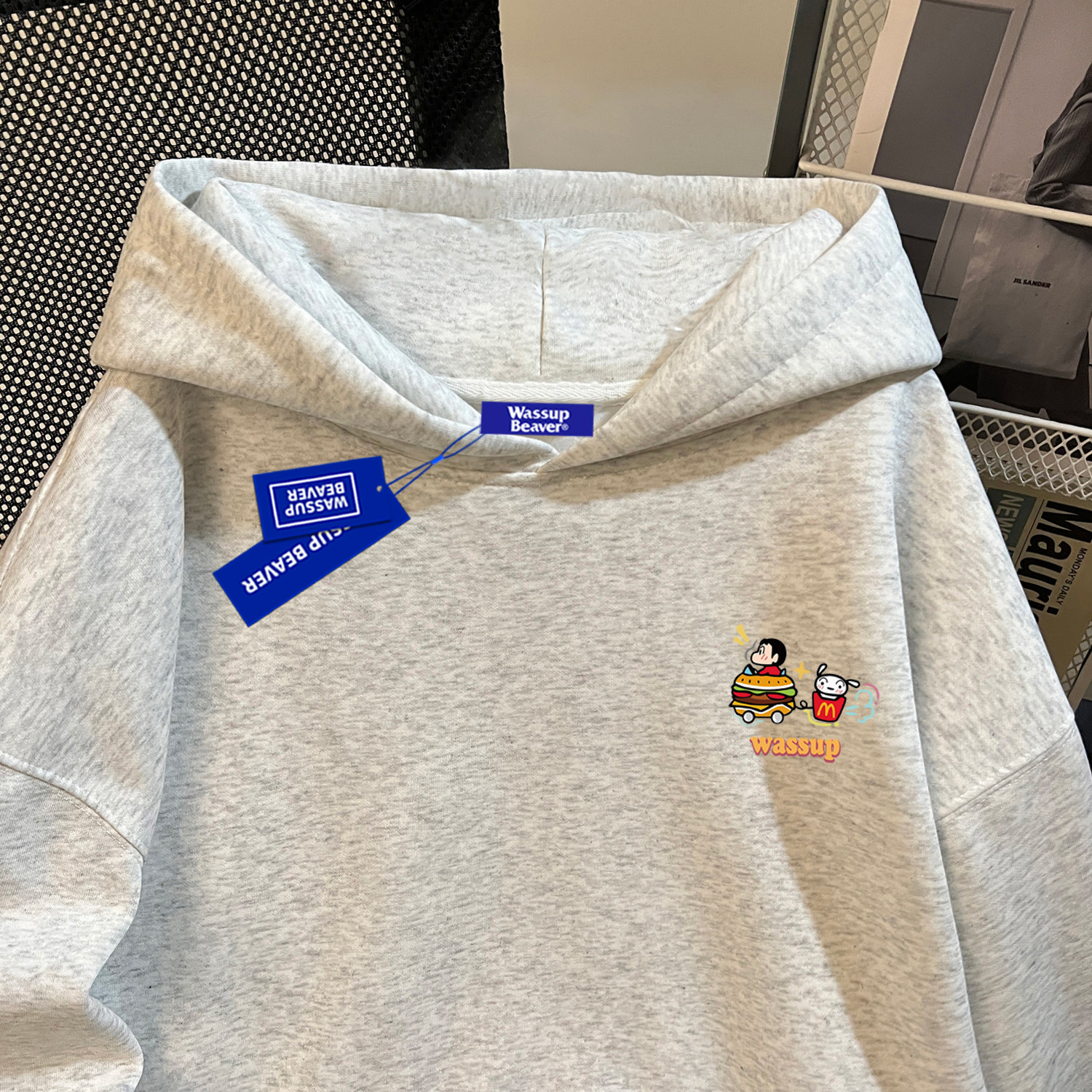 --------------------- WASSUP BEAVER蜡笔小新趣味卡通连帽卫衣重磅加绒百搭上衣情侣装 【原售价】109元 【现售价】77.4元 【推荐理由】