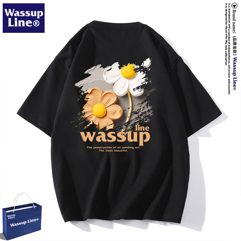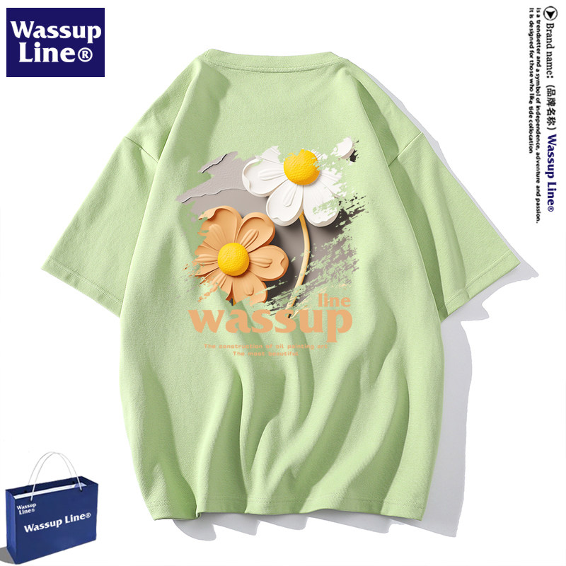 --------------------- WASSUP Line纯棉短袖t恤男士2024夏季新款国潮上衣情侣休闲半袖男 【原售价】188元 【现售价】42.2元 【推荐理由】