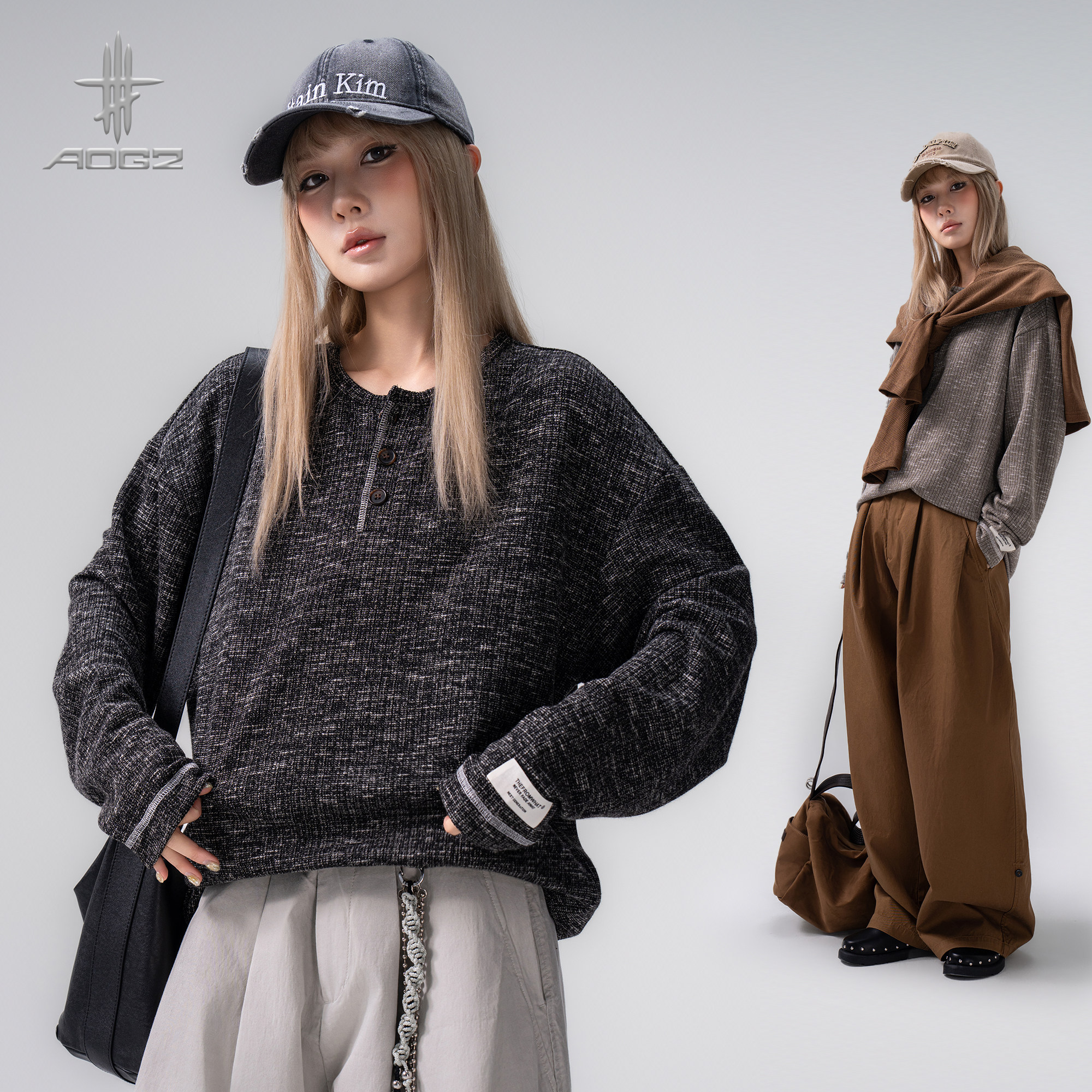 【所有女生直播间】AOGZ美式亨利领长袖卫衣男女春季新款上衣T恤