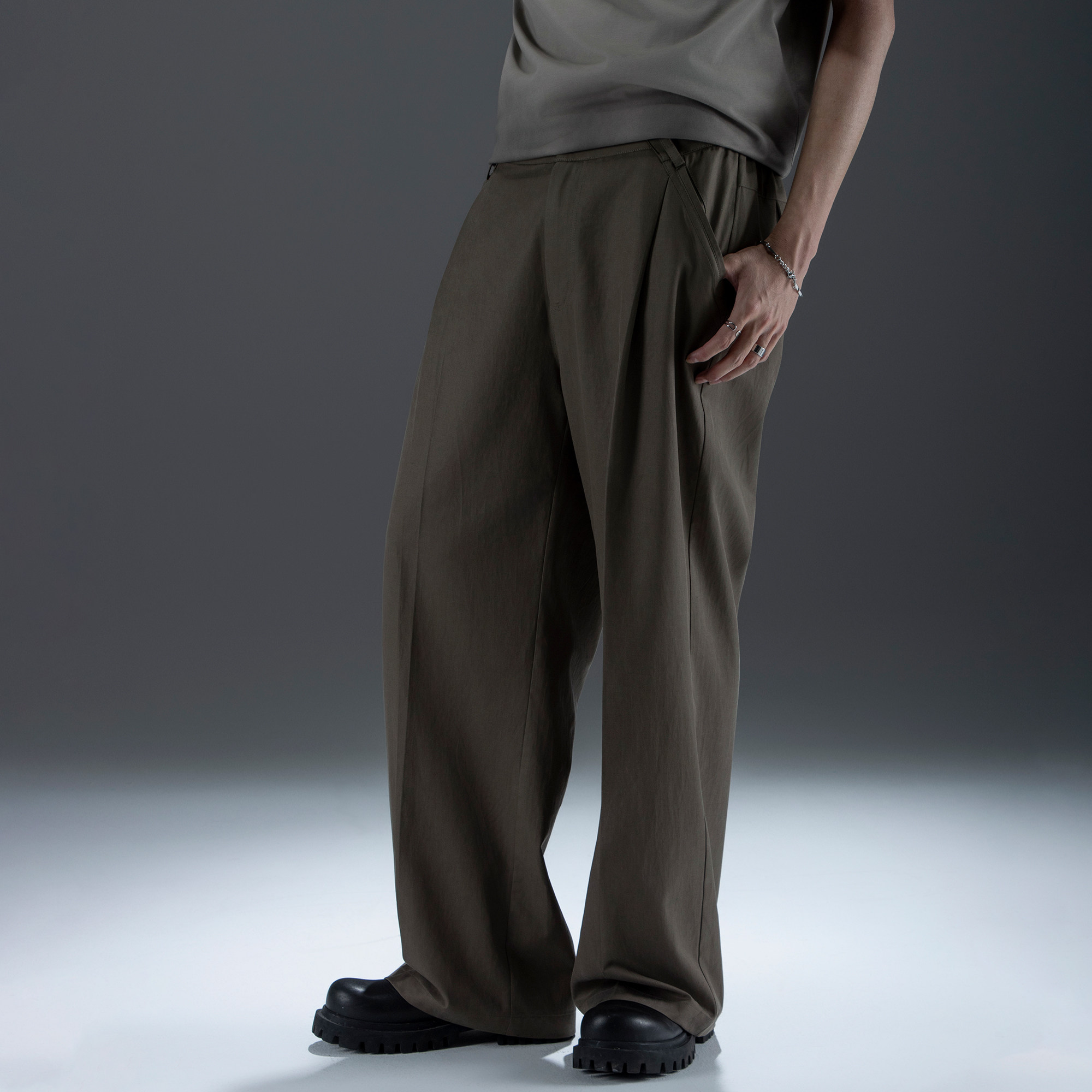 BSN1负一层【休闲西裤】国潮基础线夏季冰丝直筒阔腿长裤宽松男