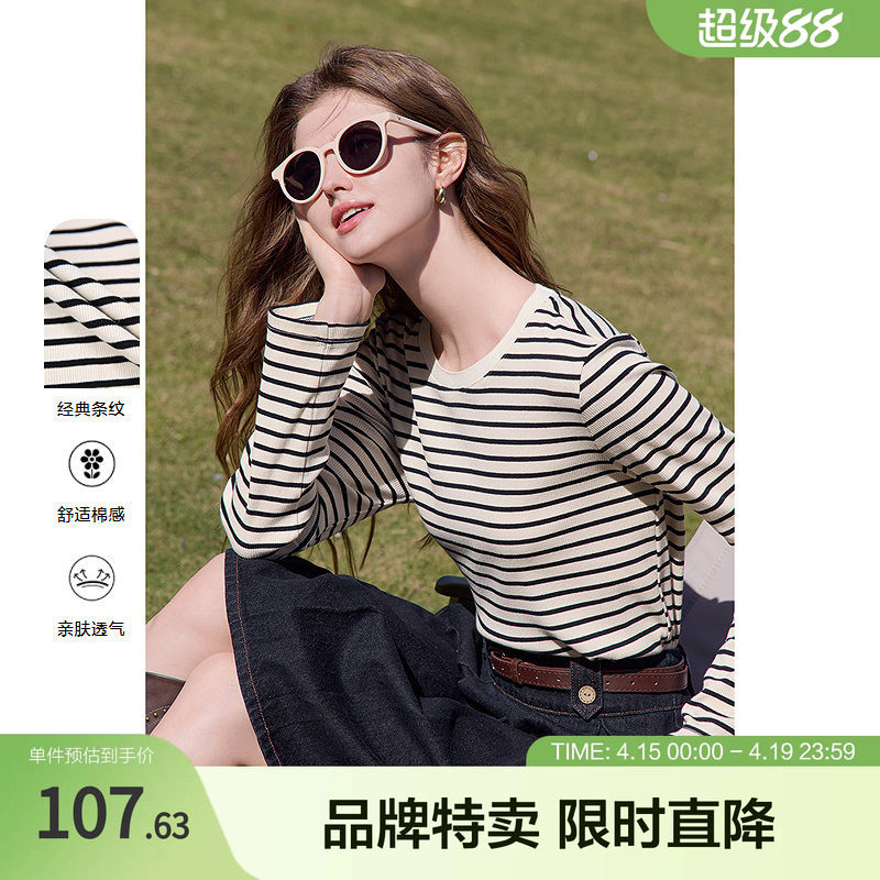 --------------------- 2025百图经典条纹T恤时尚百搭黑白条纹女式叠穿T恤 【原售价】327元 【现售价】107元 【推荐理由】