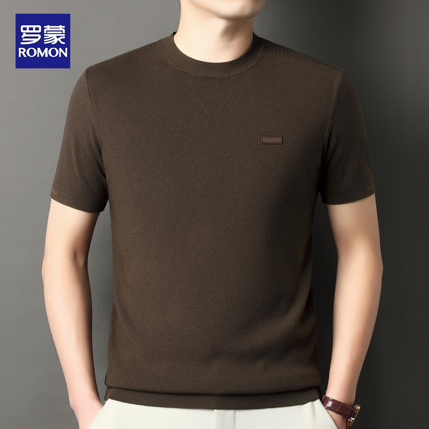 罗蒙男士短袖毛衣2026春夏新款圆领内搭打底针织羊毛衫休闲T恤衫