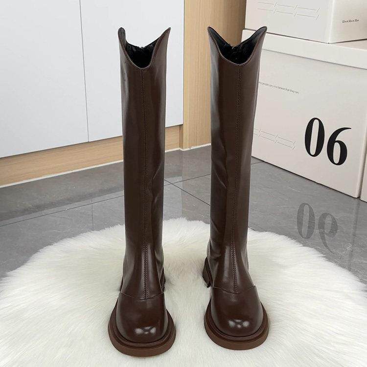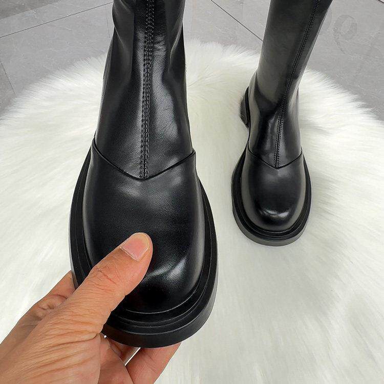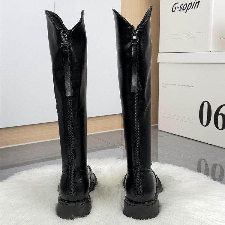 --------------------- 真皮骑士靴女2025秋冬新款显瘦不过膝长筒休闲加绒厚底瘦瘦高筒靴 --------------------- --------------------- 【原价】508元 【券后价】386元