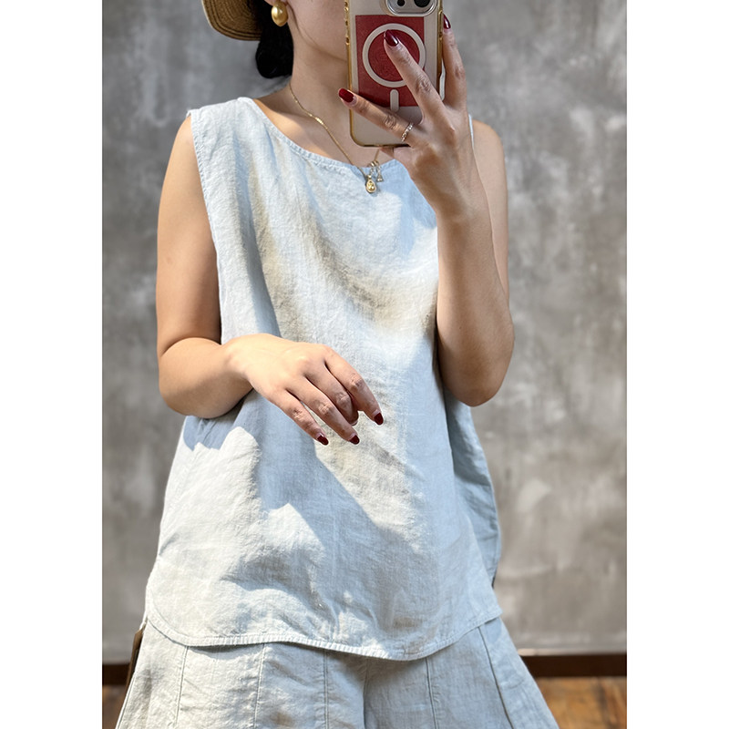 YIMIAN 春日穿搭日记汉麻极简老钱风圆领百搭舒适透气背心 2104