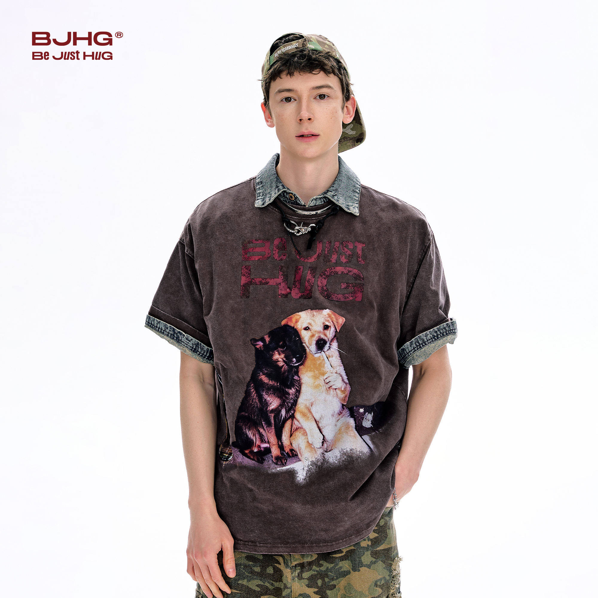 BJHG不计后果 美式复古短袖T恤男款夏季新款街头风纯棉宽松上衣女