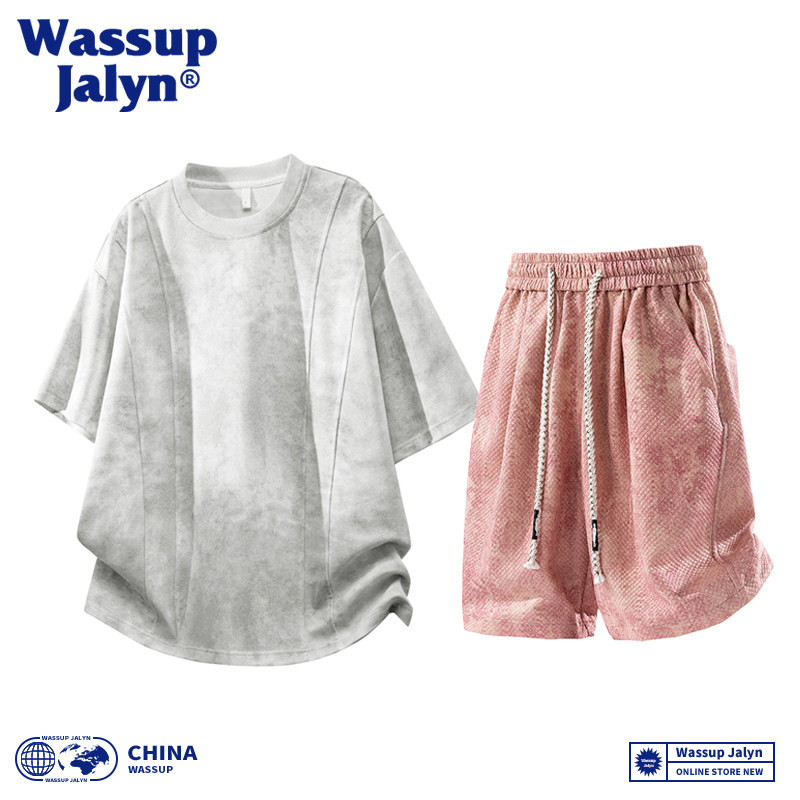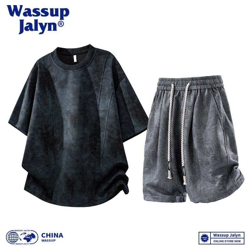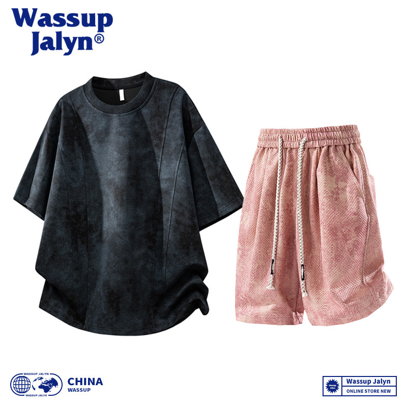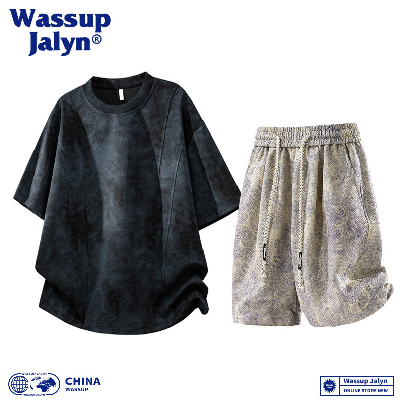 WASSUP JALYN美式短袖T恤套装男夏季潮牌宽松半袖休闲短裤两件套