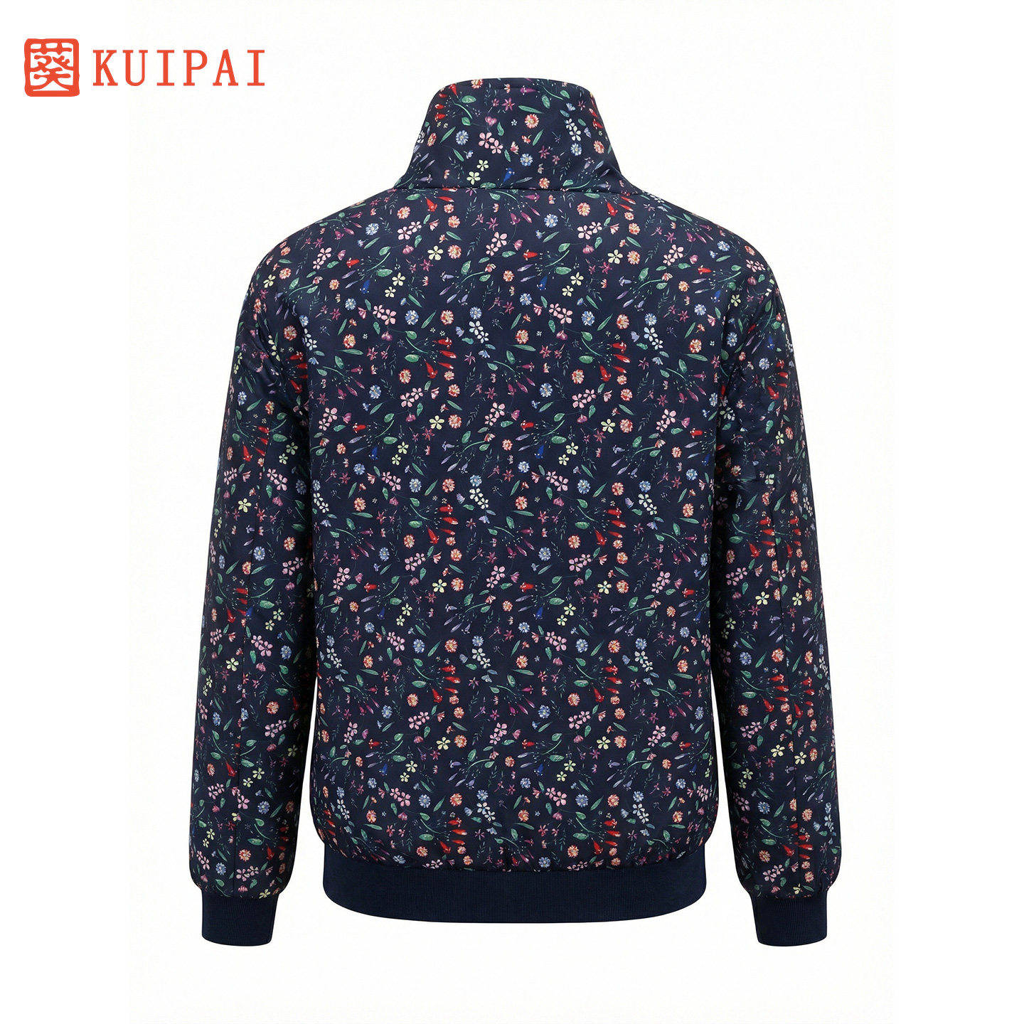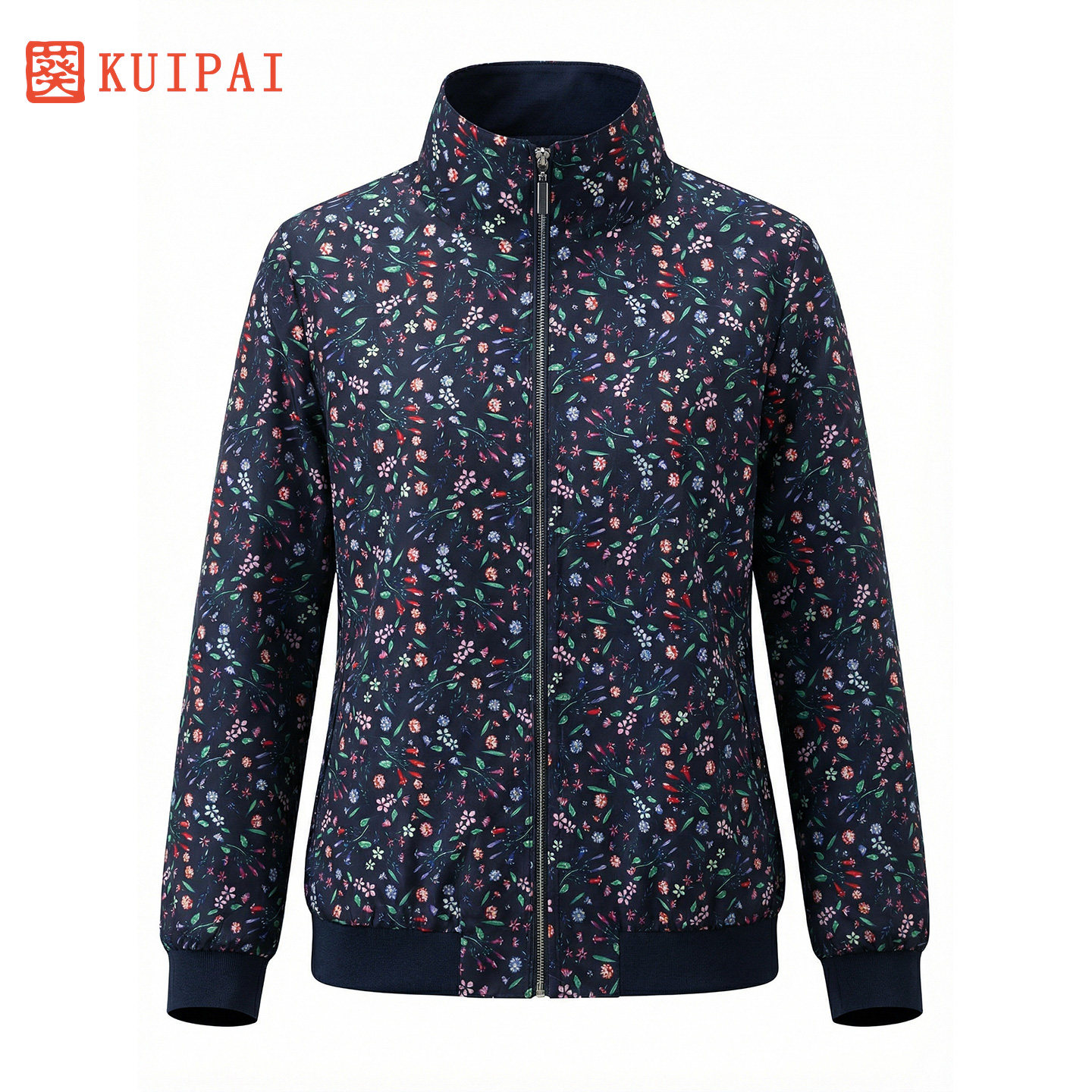 葵2026春季新品中老年妈妈装日常印花碎花翻领拉链罗纹夹克外套女