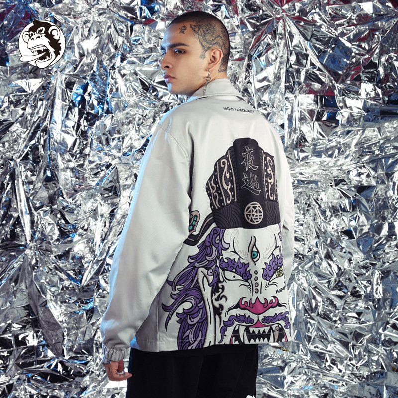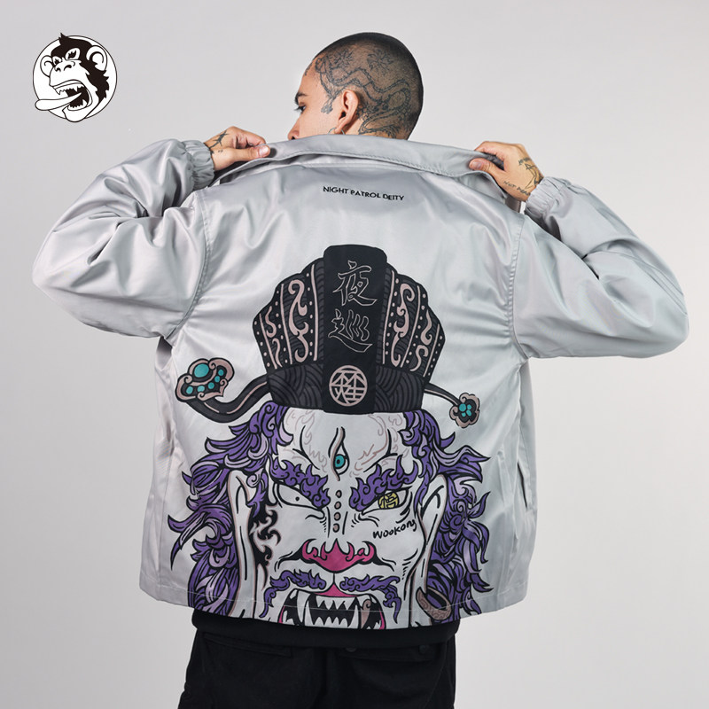 淘宝WOOKONG 悟空 夜游神印花教练夹克 春秋季男士女工装外套原创潮牌