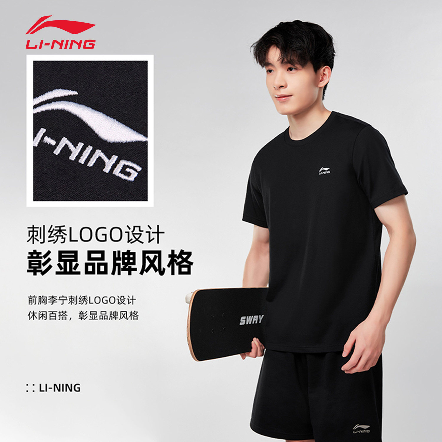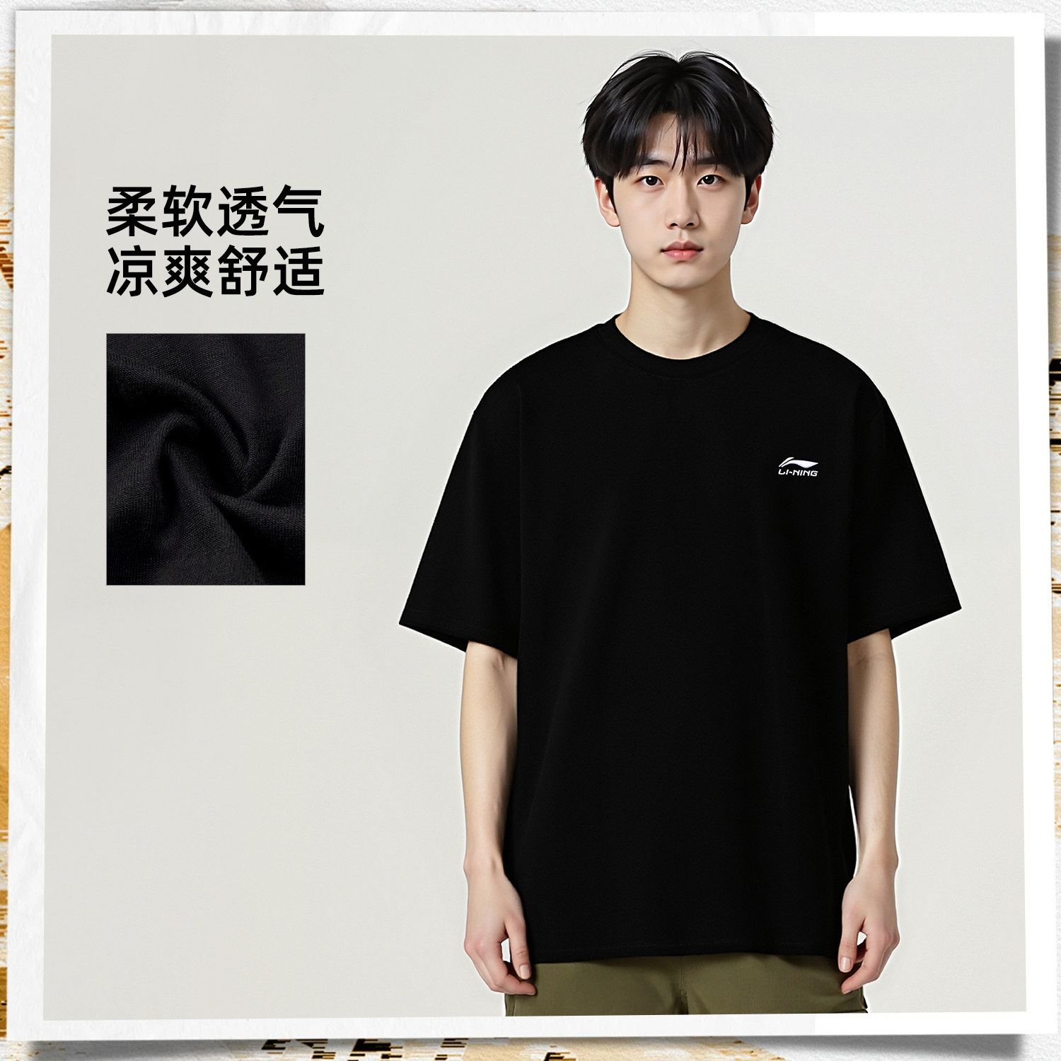 李宁短袖男t恤纯棉亲肤上衣2026新款夏季宽松休闲透气圆领运动服