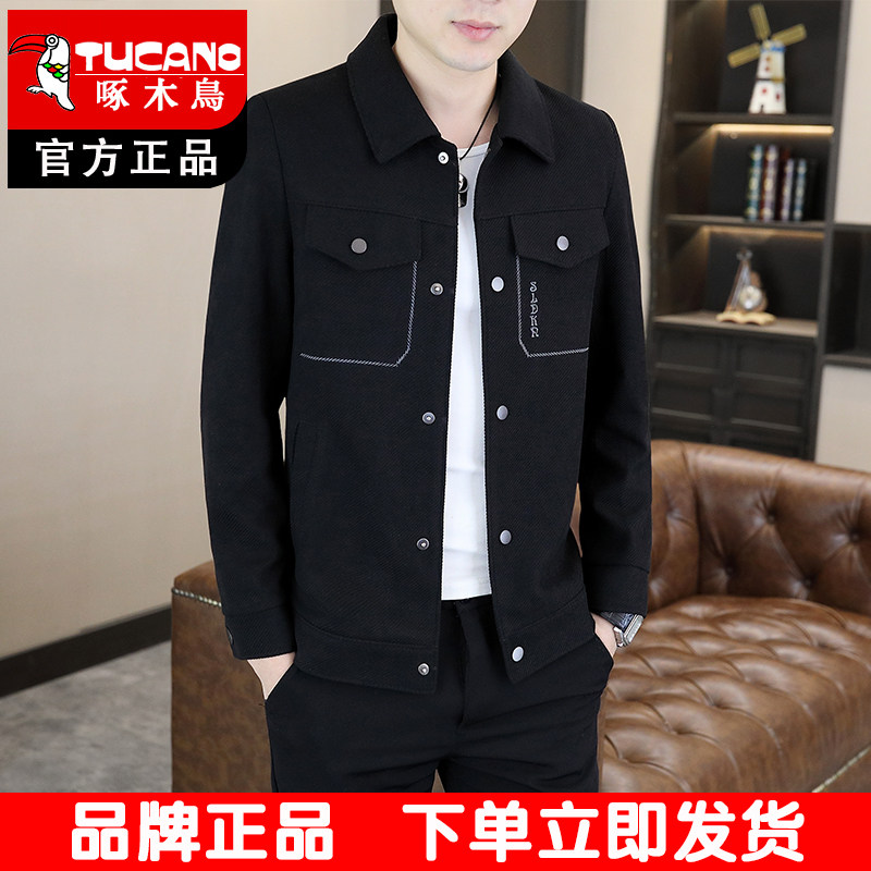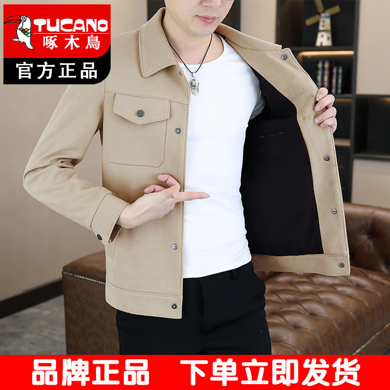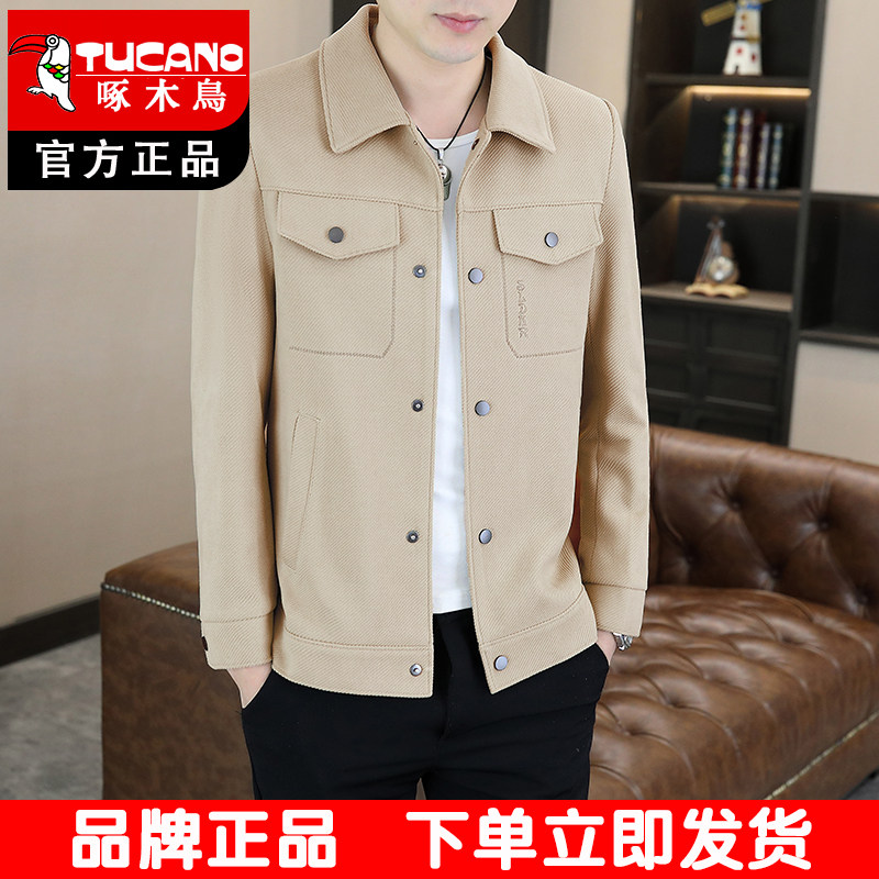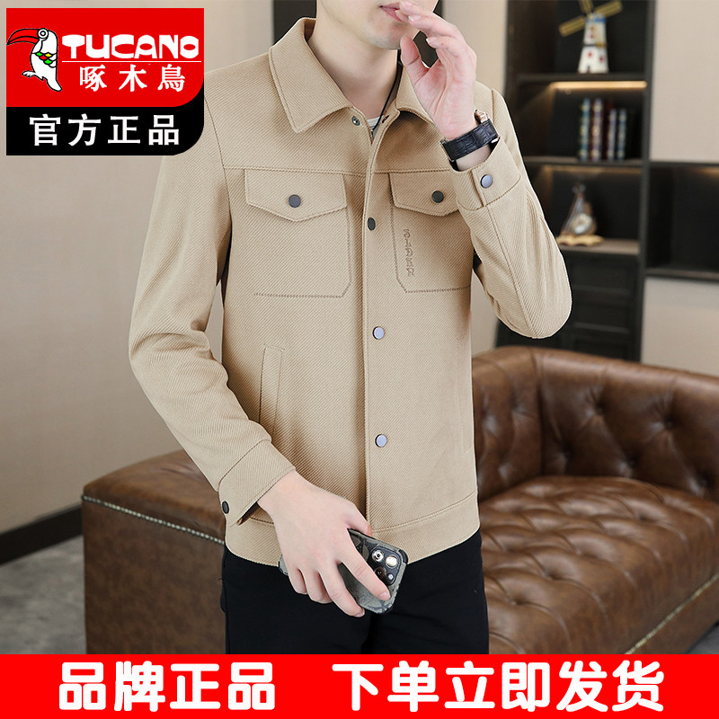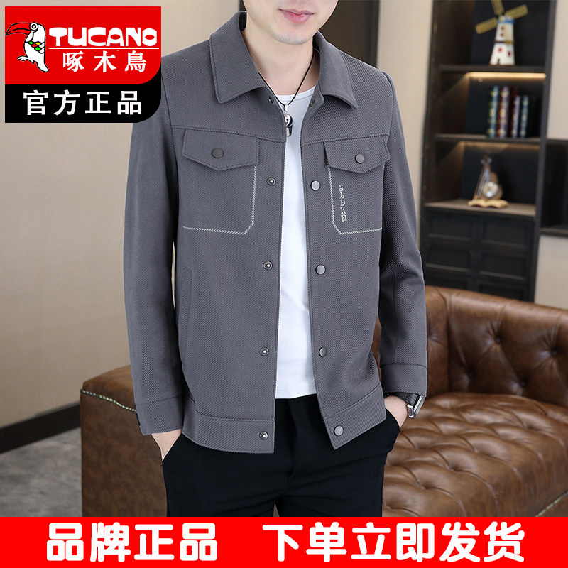 淘宝啄木鸟翻领夹克男士外套2026春秋装修身百搭休闲外套男装纯色上衣