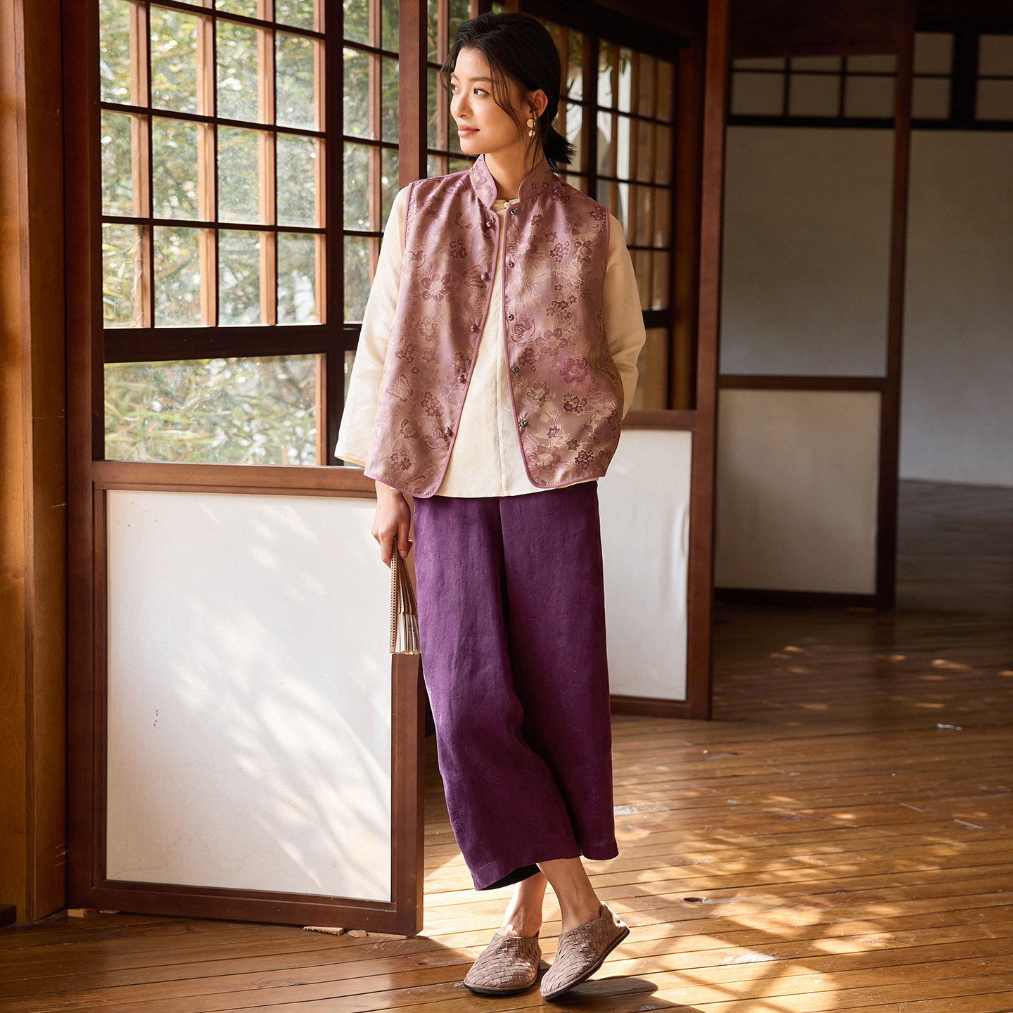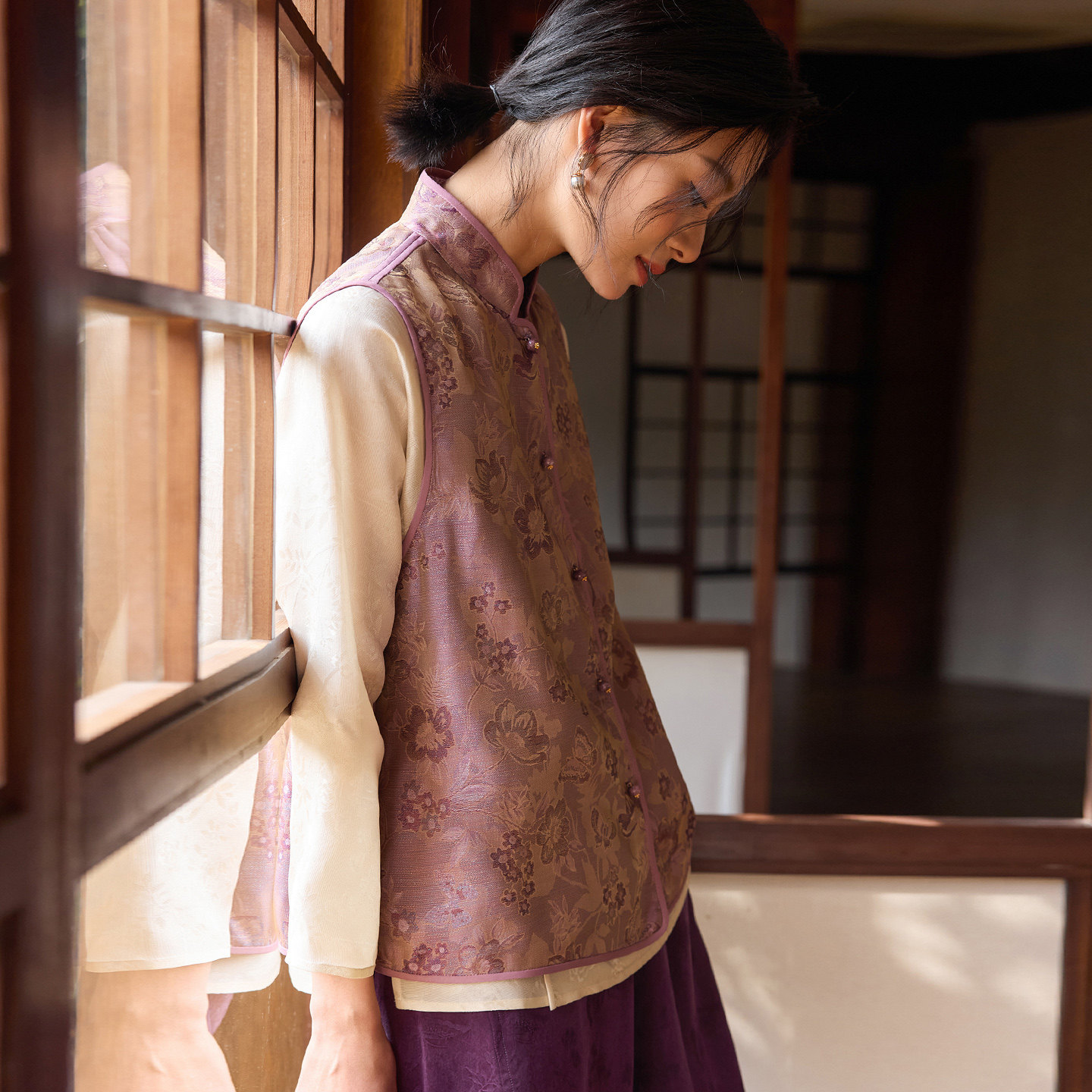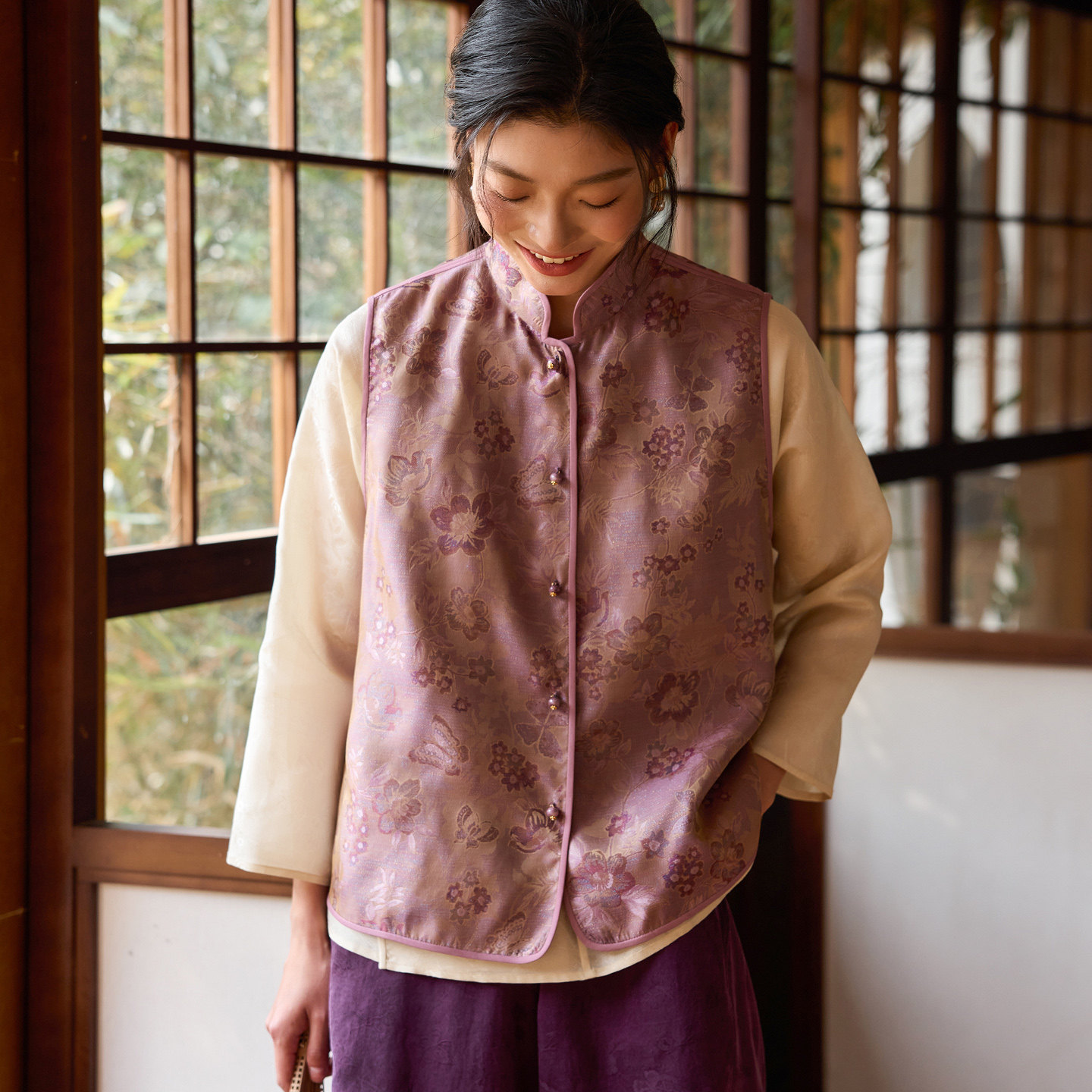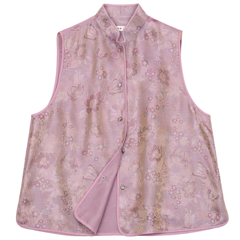 --------------------- 菲伊唐中式国潮马甲真丝螺钿花萝提花复古改良对襟立领马夹女上衣 【原售价】578元 【现售价】508元 【推荐理由】