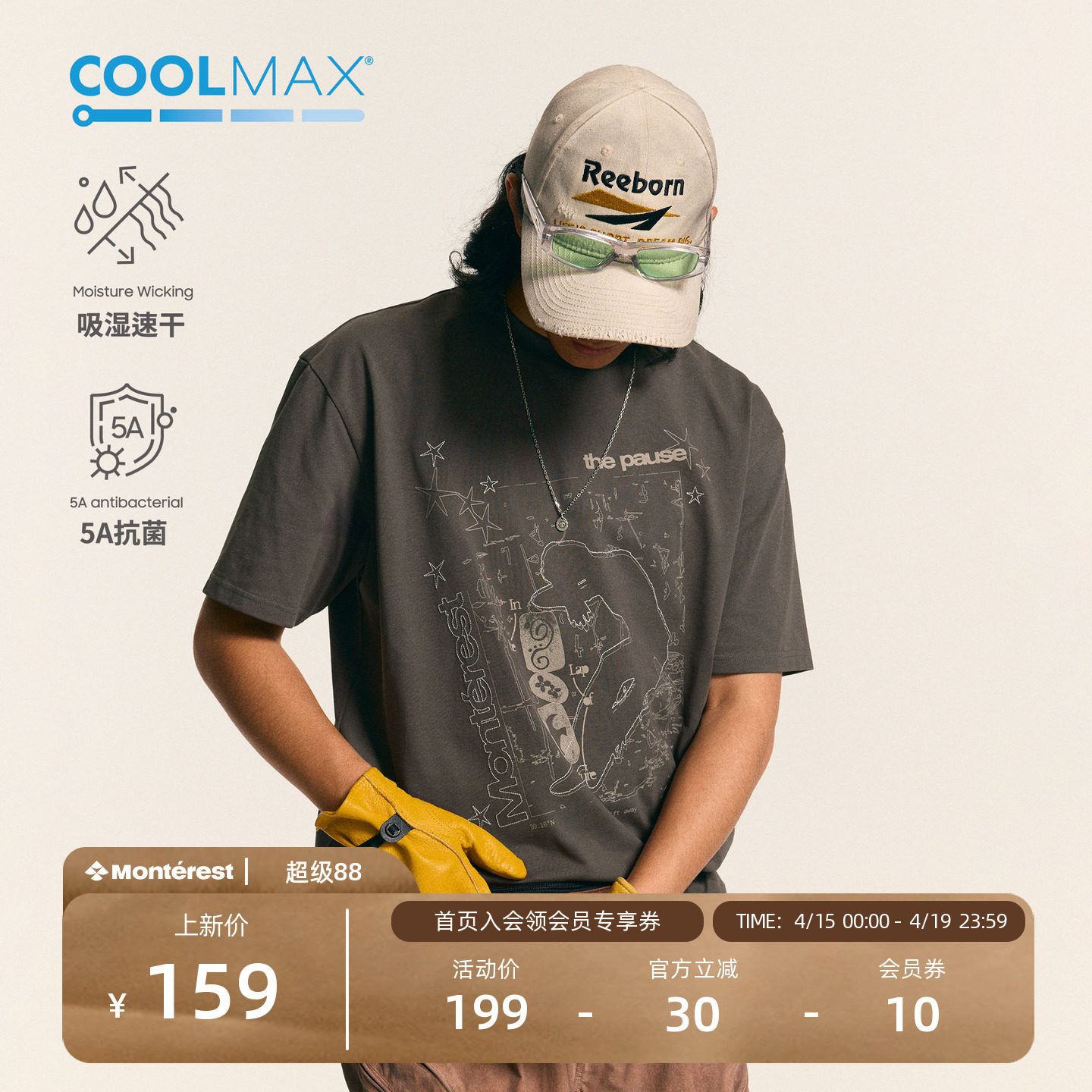 --------------------- 瞬时山野Monterest户外5A抗菌Coolmax速干THEPAUSE印花短袖T恤男 【原售价】219元 【现售价】169元 【推荐理由】