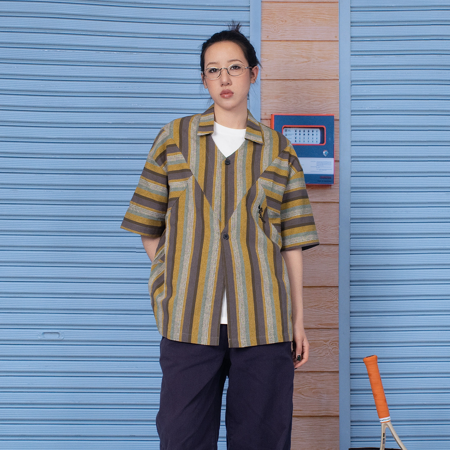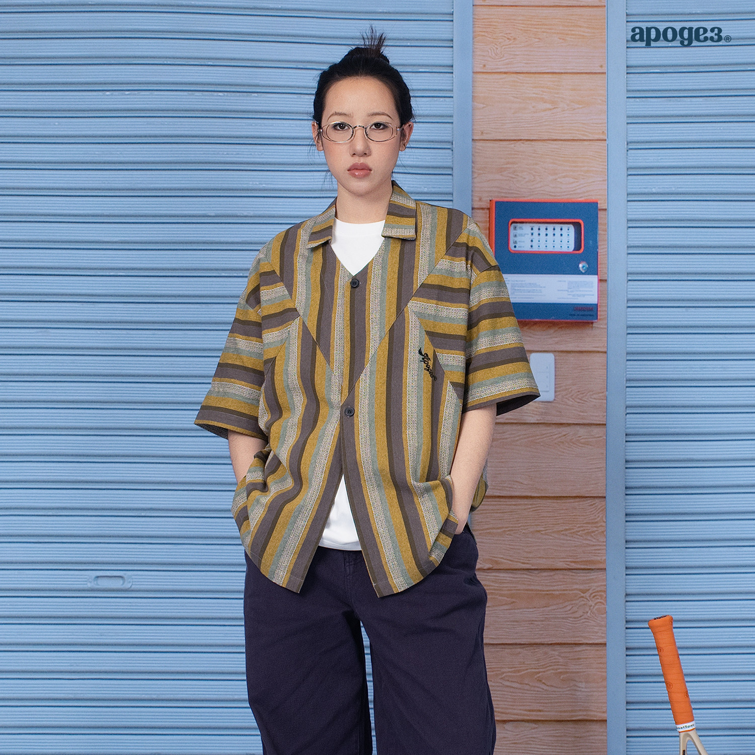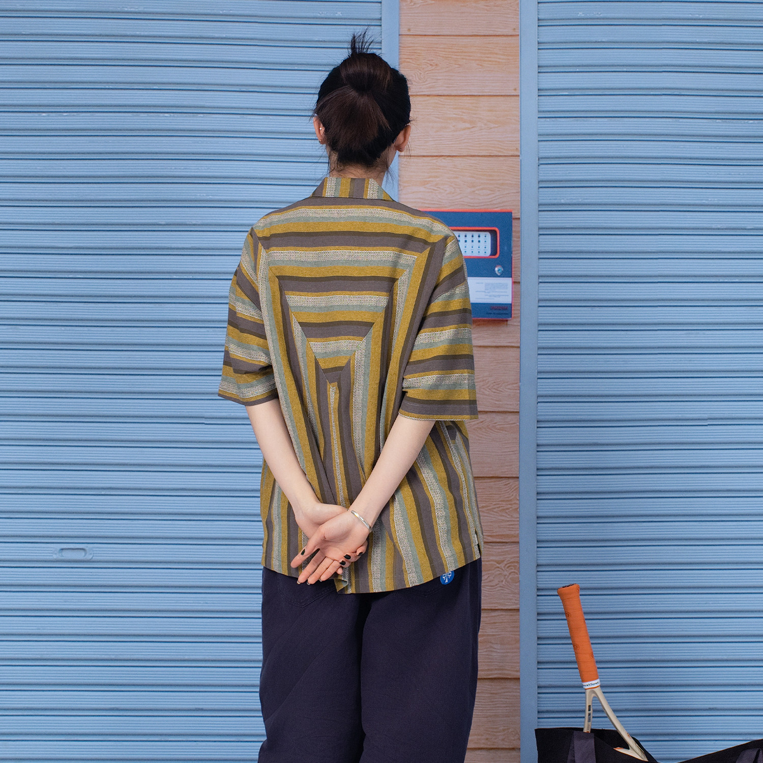 淘宝APOGE3阿保机 夏季设计师潮牌短袖衬衫男美式复古女拼色休闲宽松