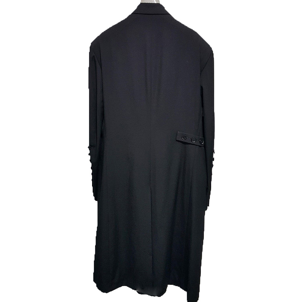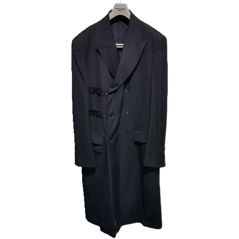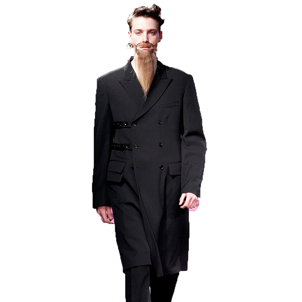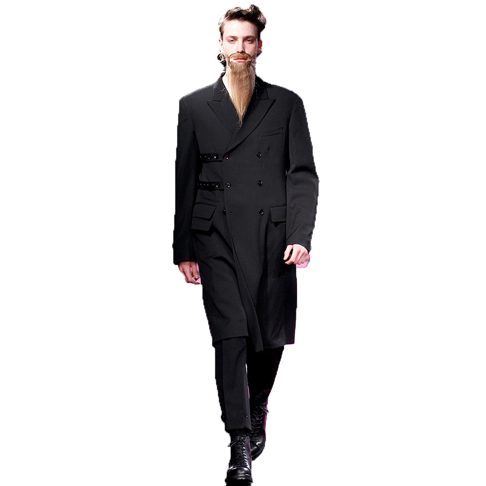 男风衣走秀定制款双排扣格中长款外套西服领青少年黑色欧美