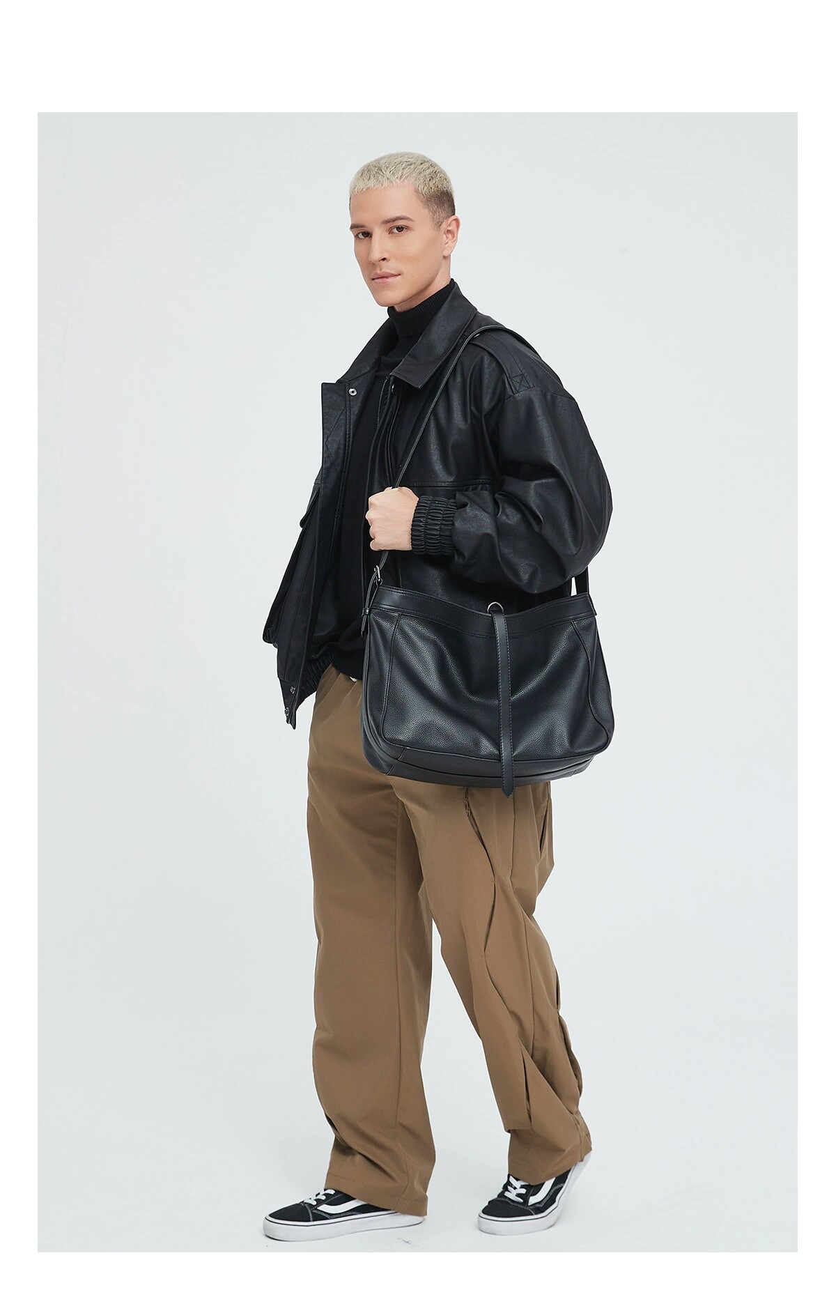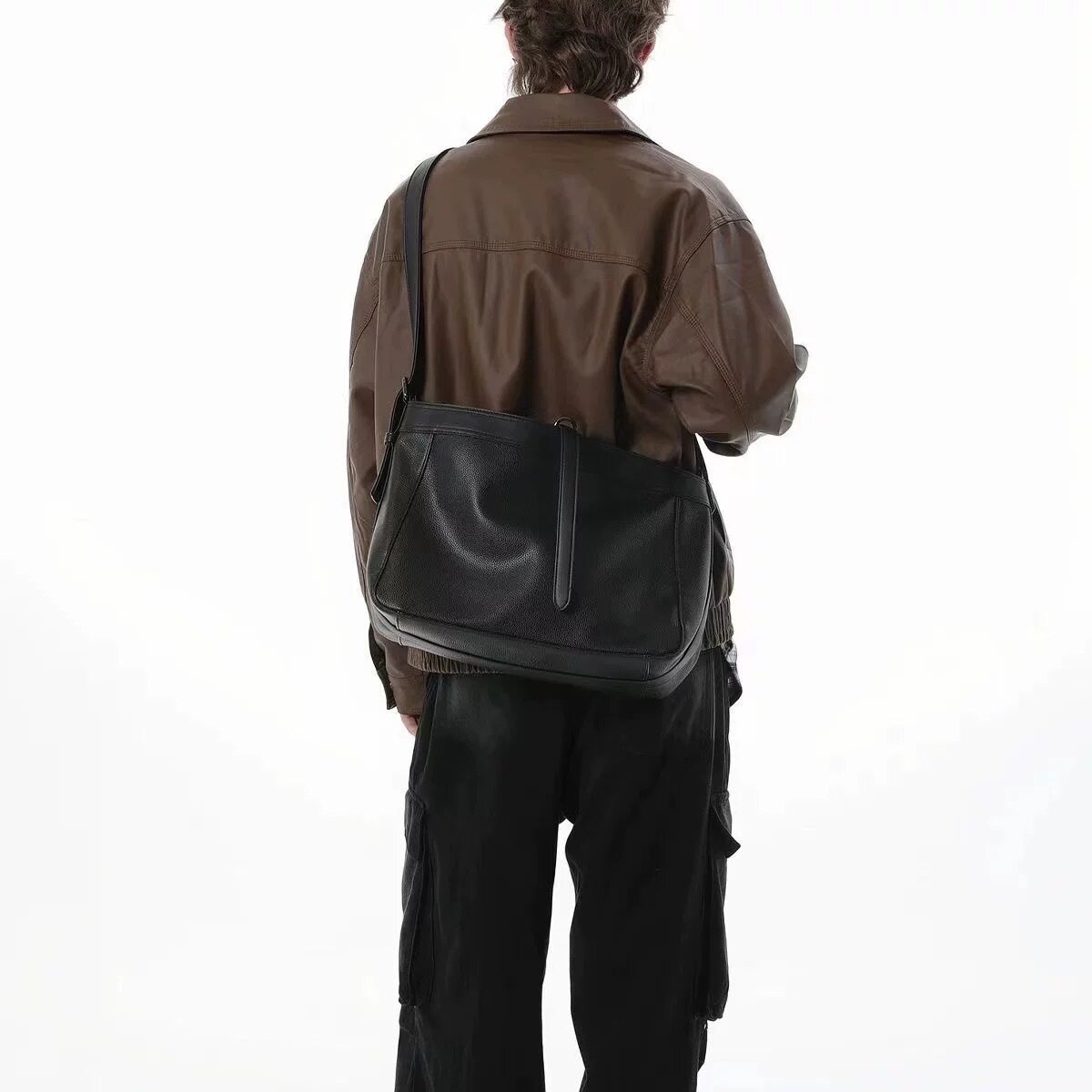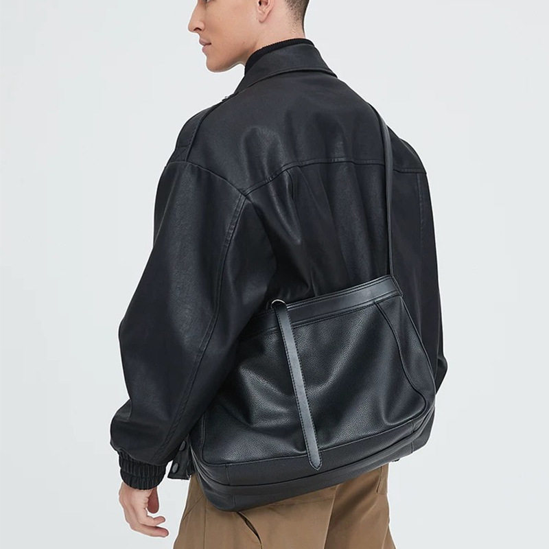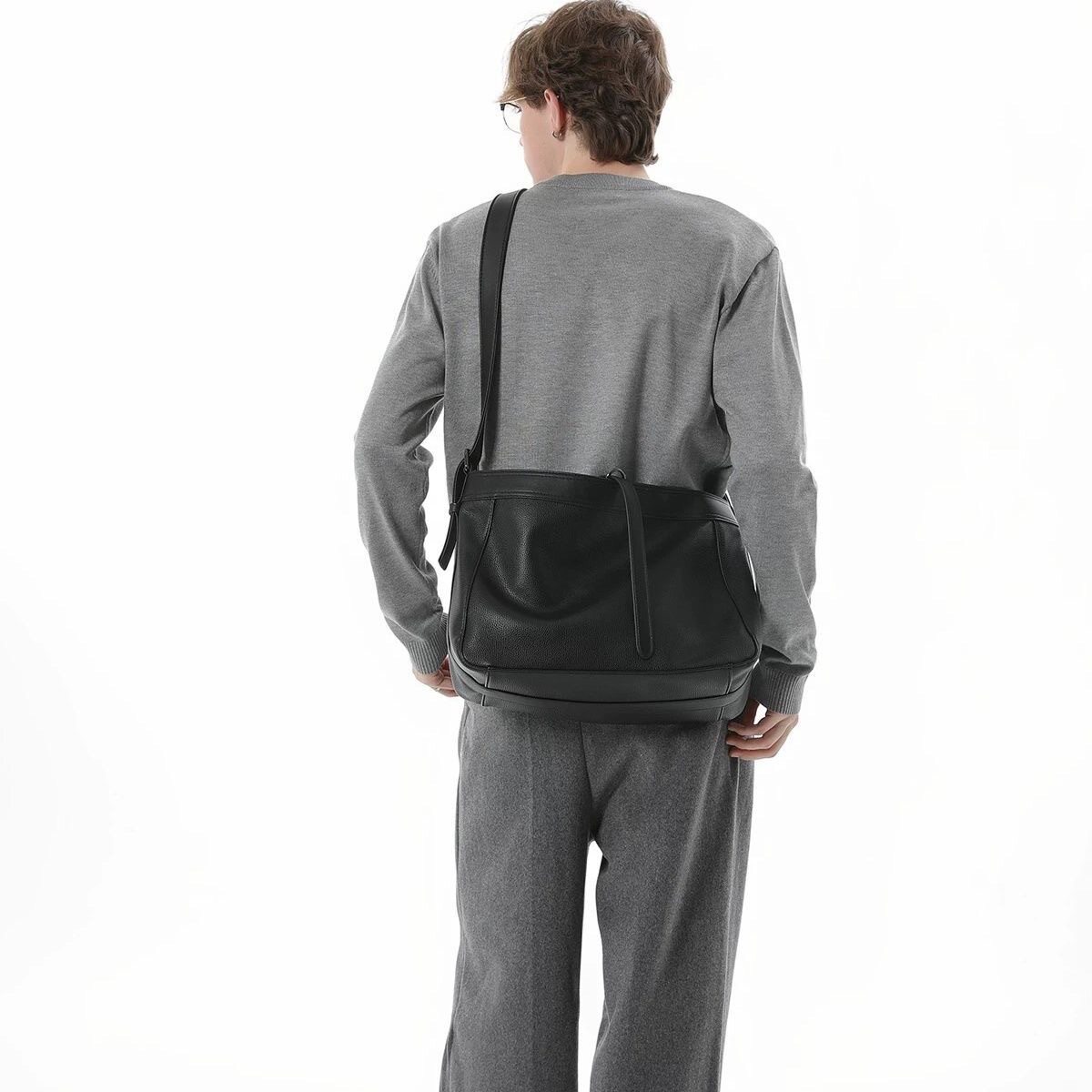 淘宝高级感荔枝纹软皮斜挎包男生新品大容量小众简约托特包通勤单肩包
