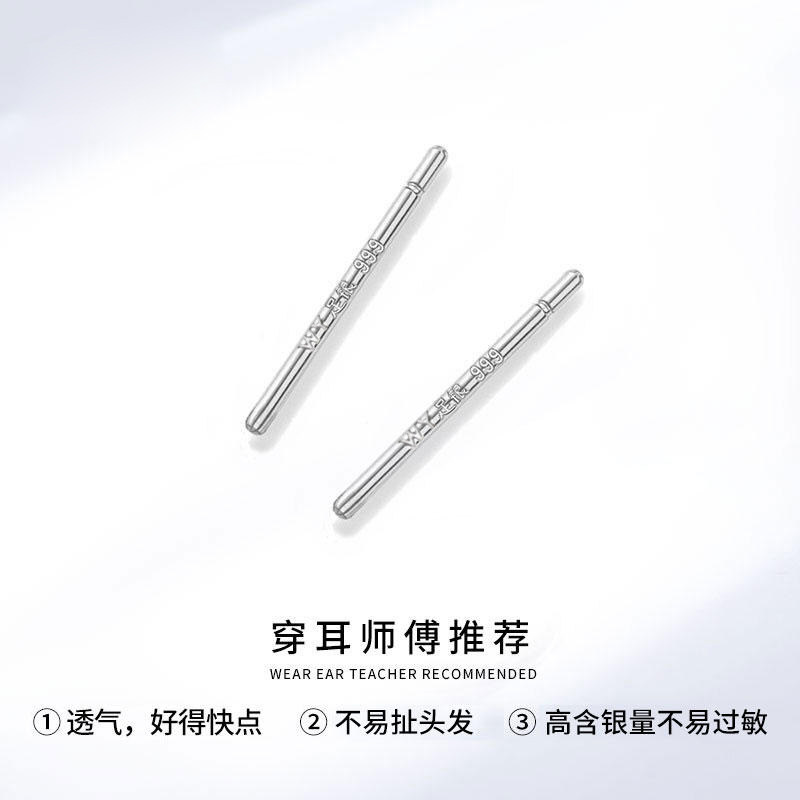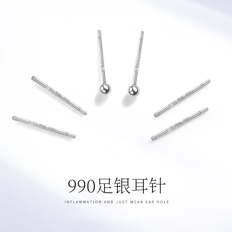 吴越老银铺足银990纯银耳钉女养耳洞睡觉免摘耳棒小圆球耳针耳饰