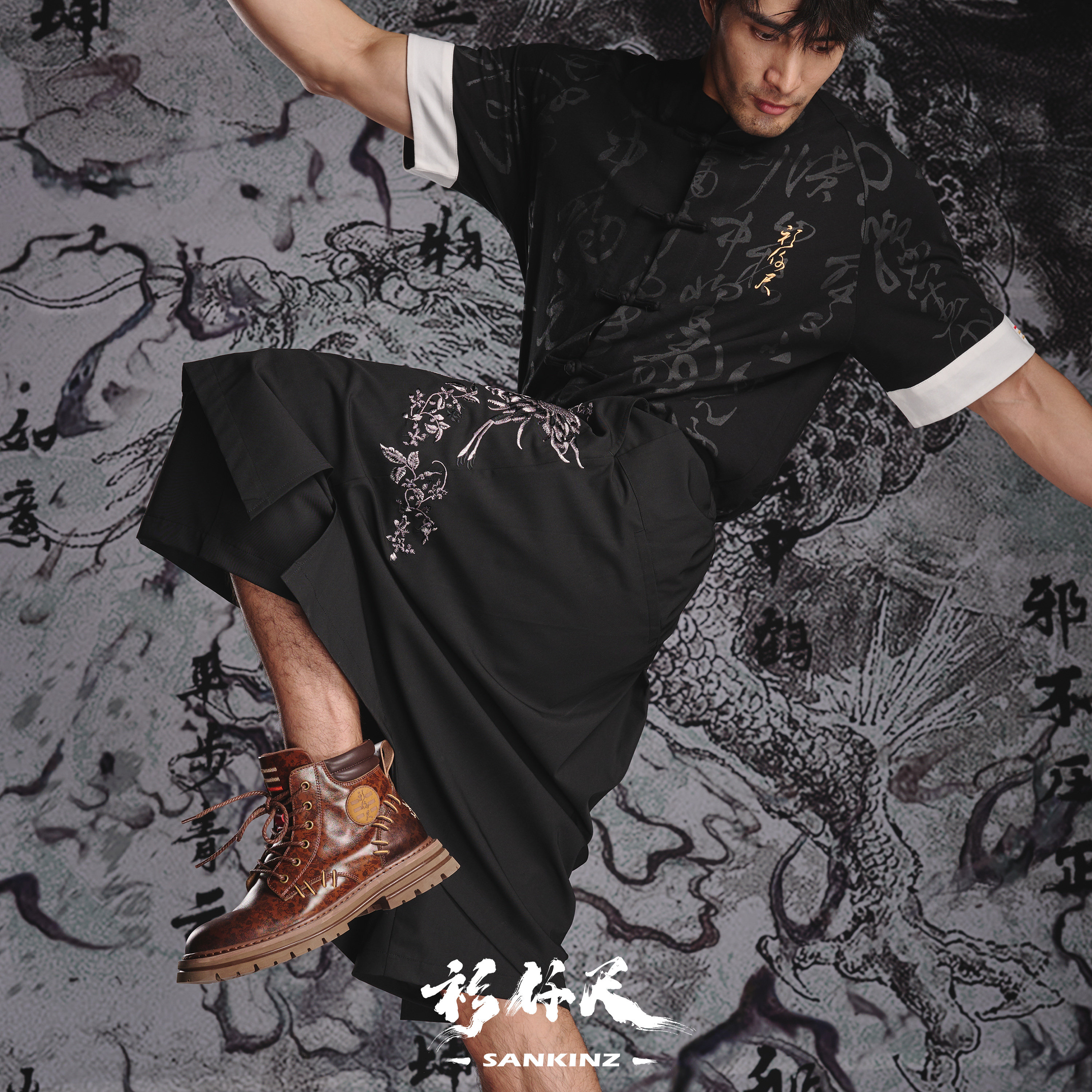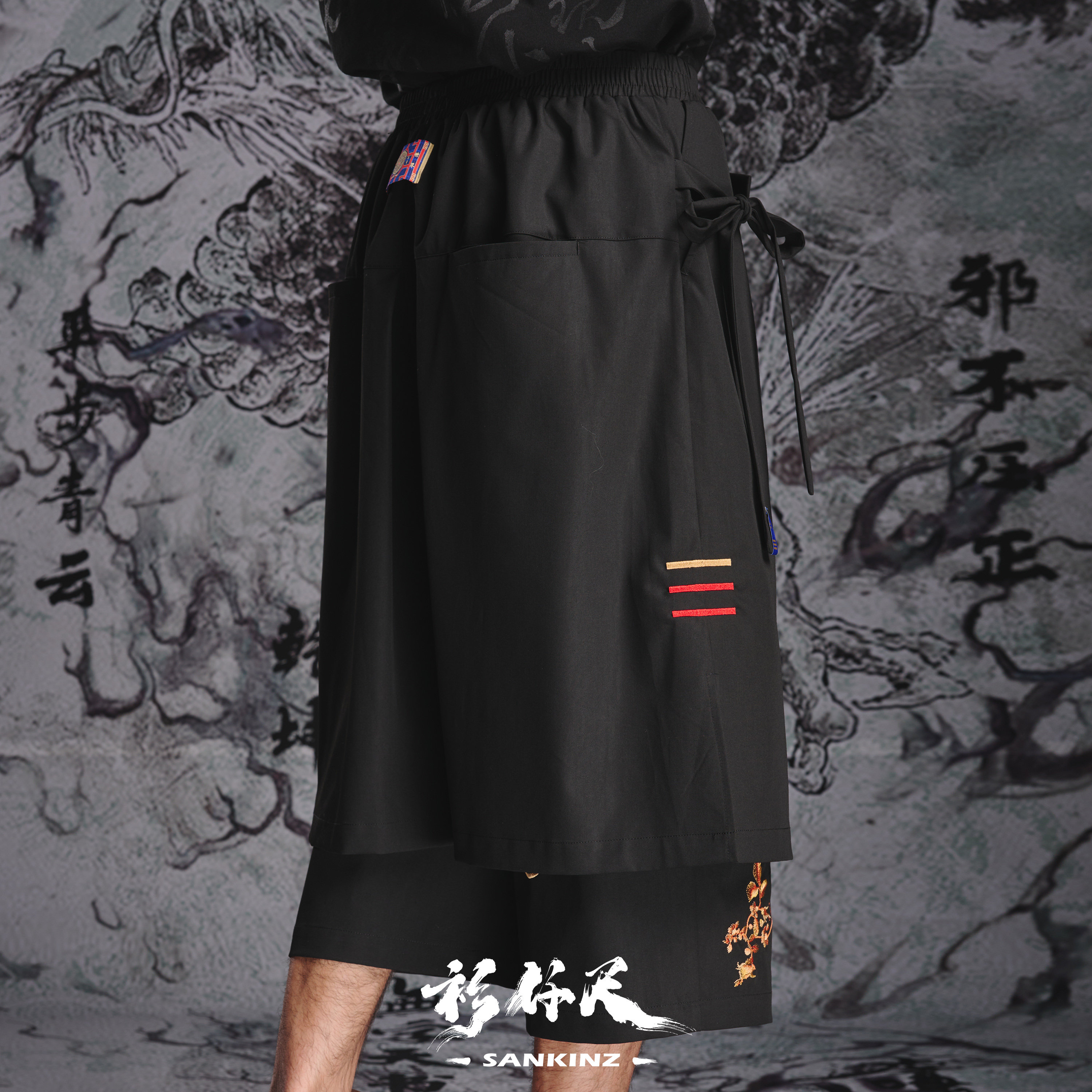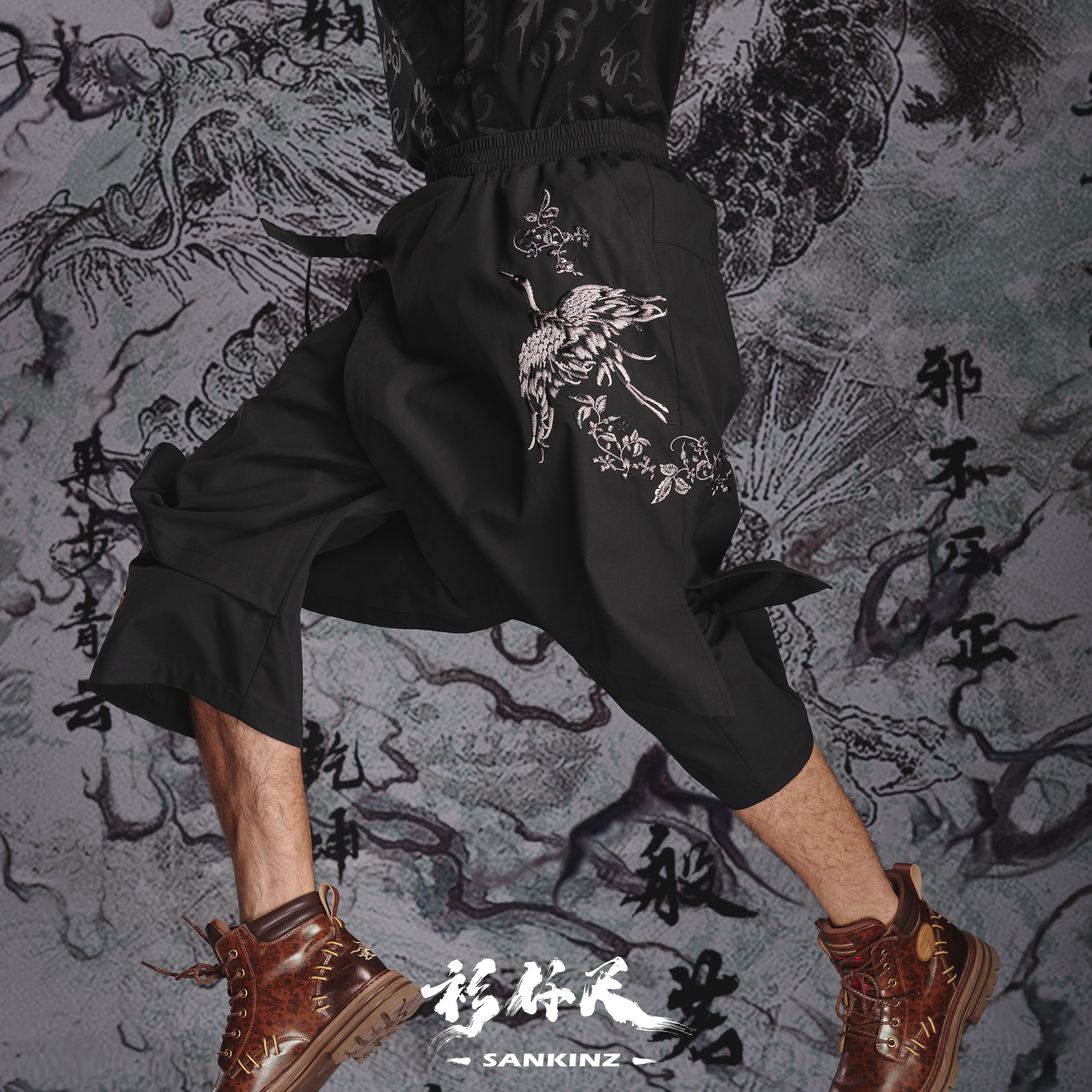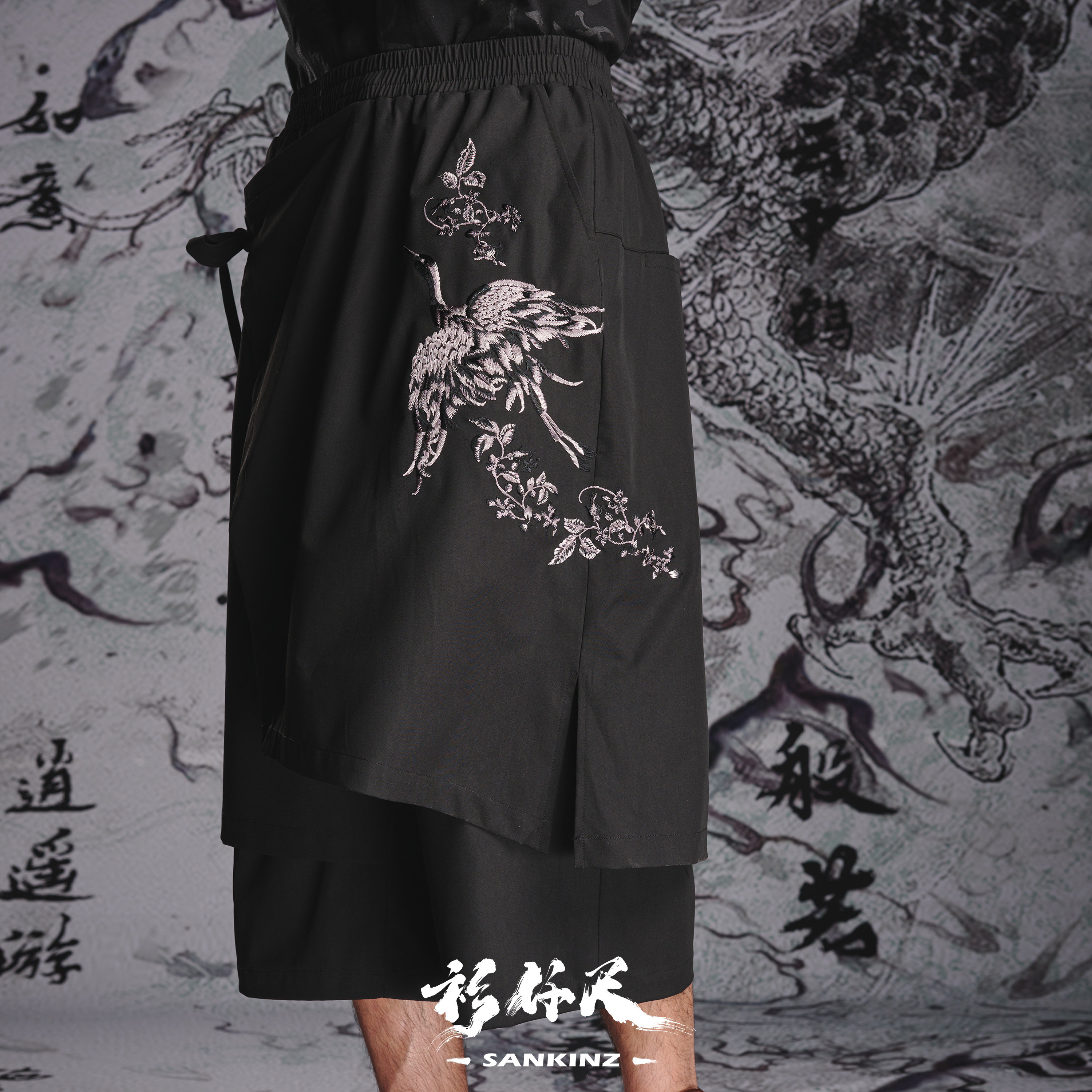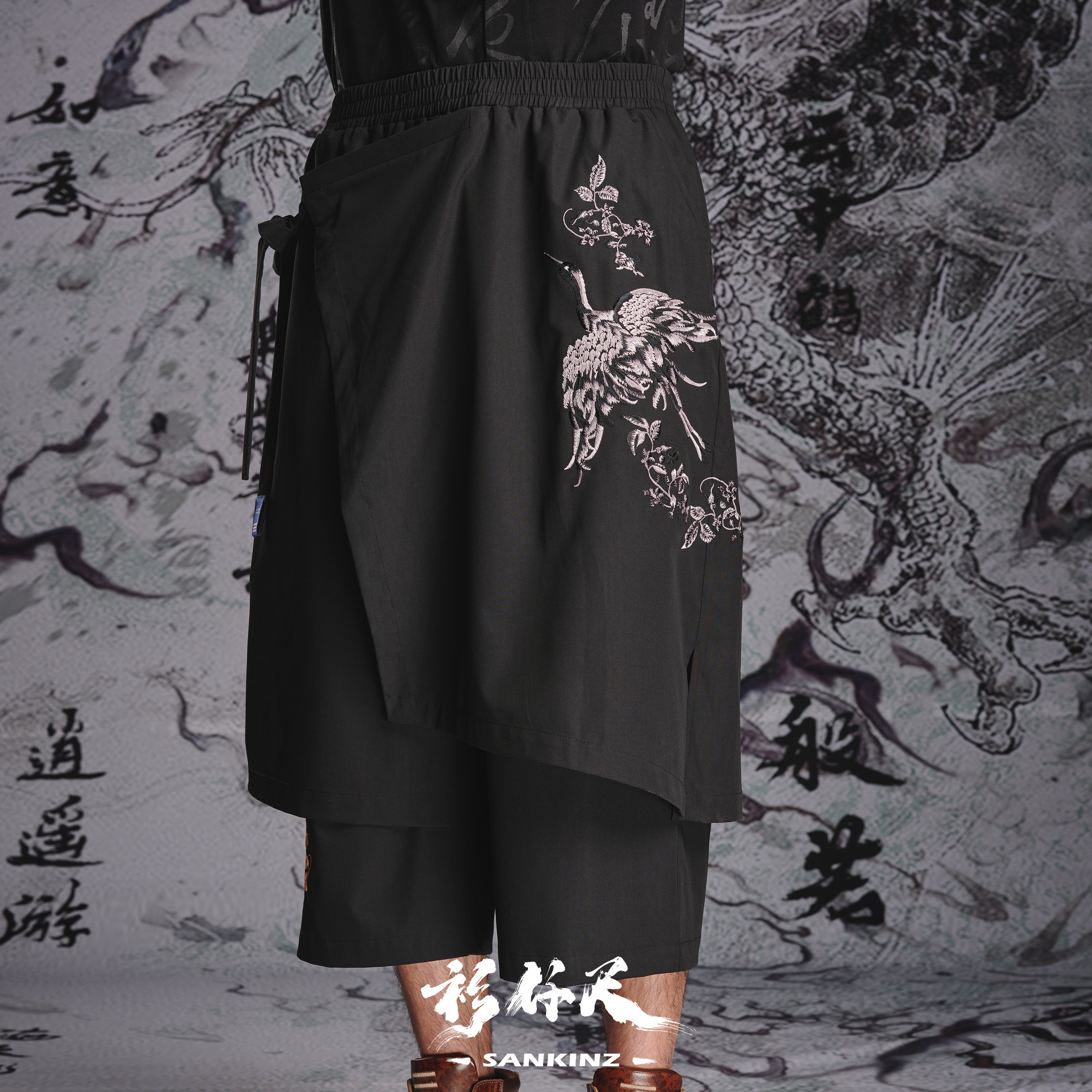 淘宝衫仟尺新品【玄鹤】夏季中国风国潮绣花拼接多宽松裙裤短裤男女