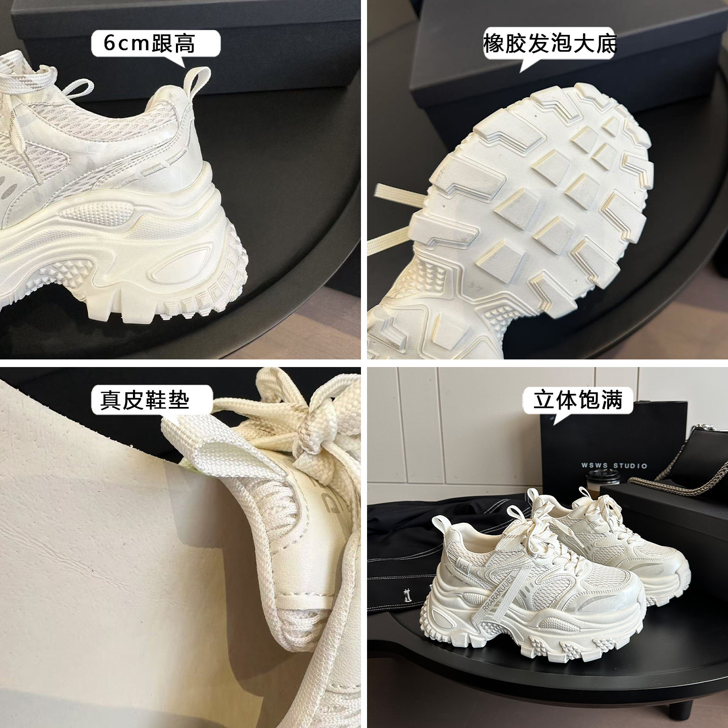 --------------------- WSWS|国潮新品春夏网面透气增高轻便徒步厚底老爹鞋女休闲运动鞋 【原售价】288元 【现售价】253元 【推荐理由】