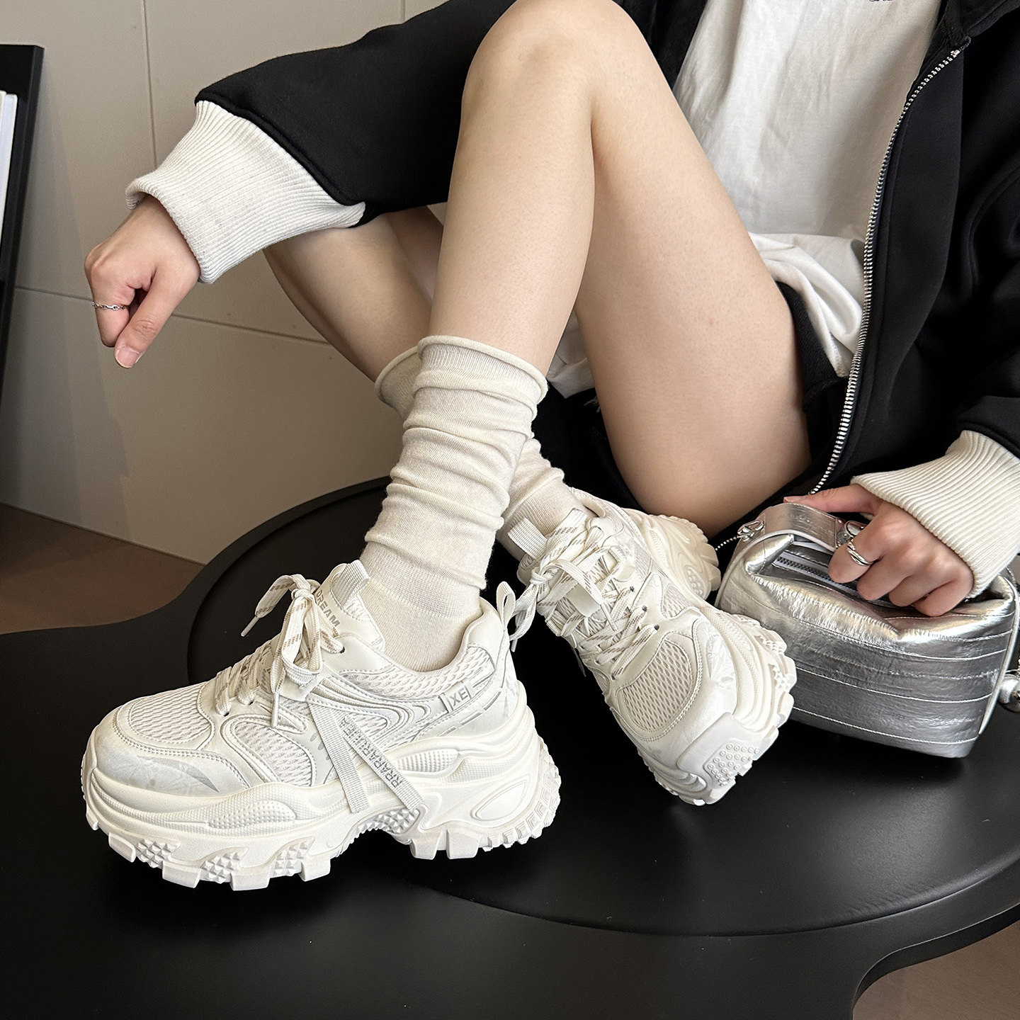 WSWS|国潮新品春夏网面透气增高轻便徒步厚底老爹鞋女休闲运动鞋