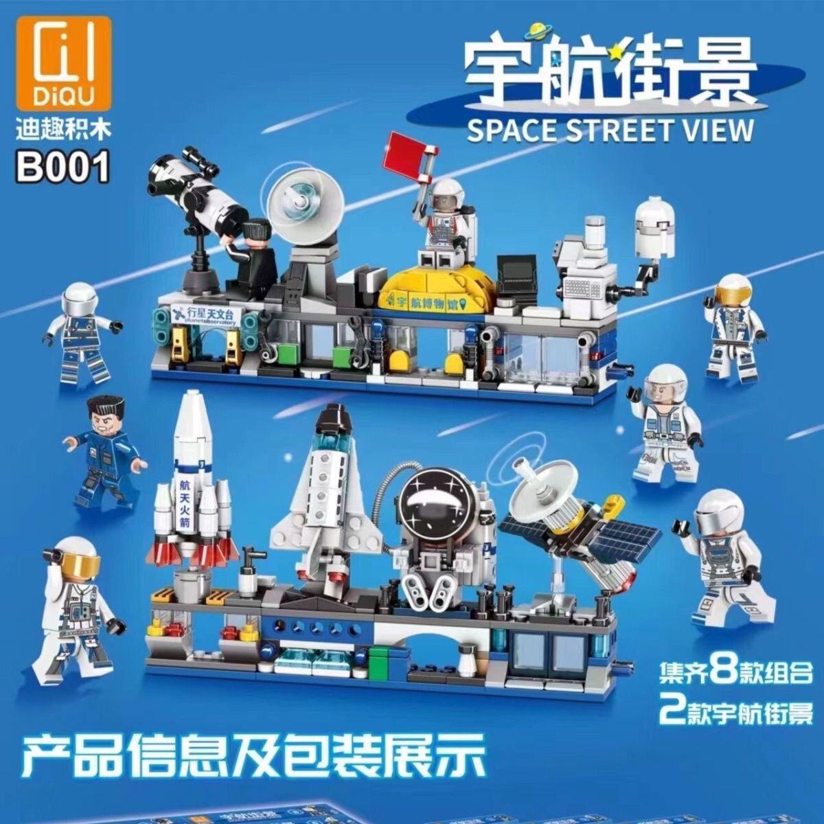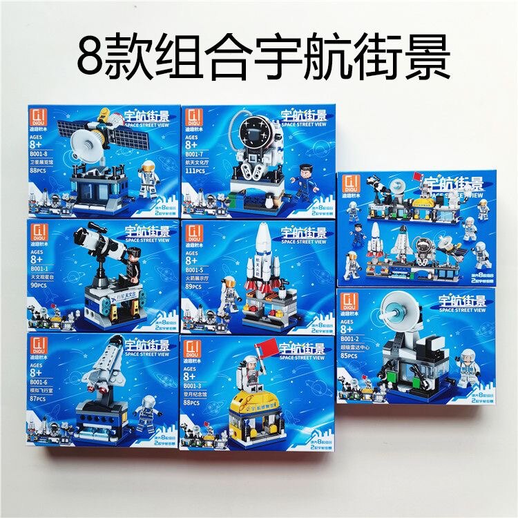 淘宝迪趣B001航天街景长征五号展示厅航天馆飞机宇航员场景拼装积木