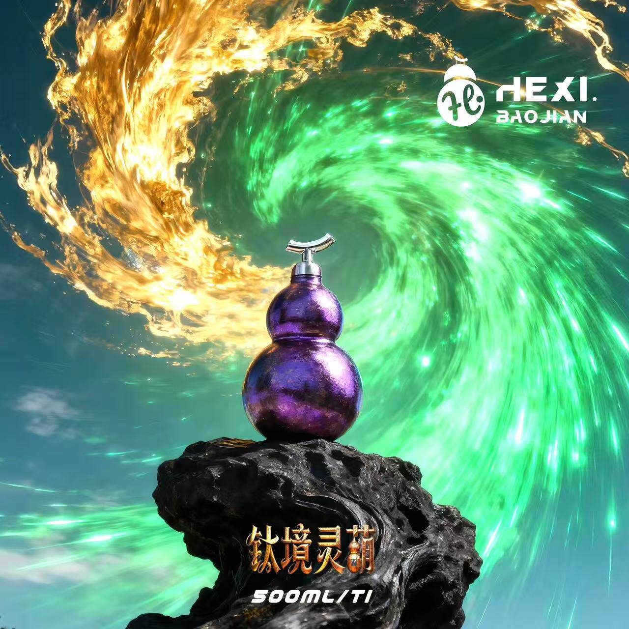 正品鹤玺纯钛葫芦保温杯500ml吸管创意复古葫芦户外旅行杯男女款
