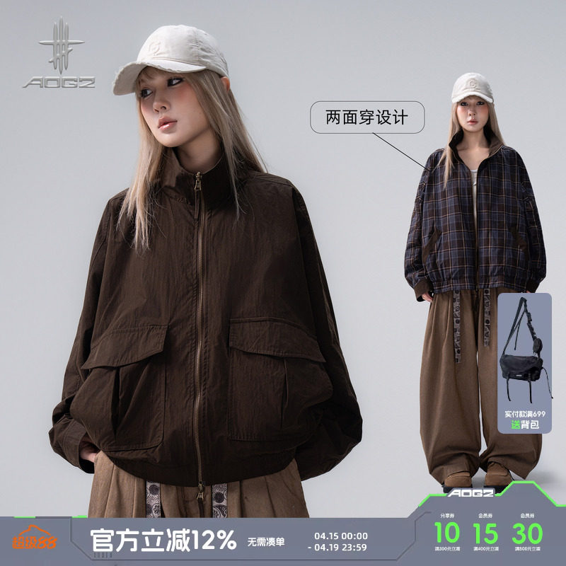 AOGZ美式复古两面穿夹克男女2026春季新款宽松休闲立领工装外套潮