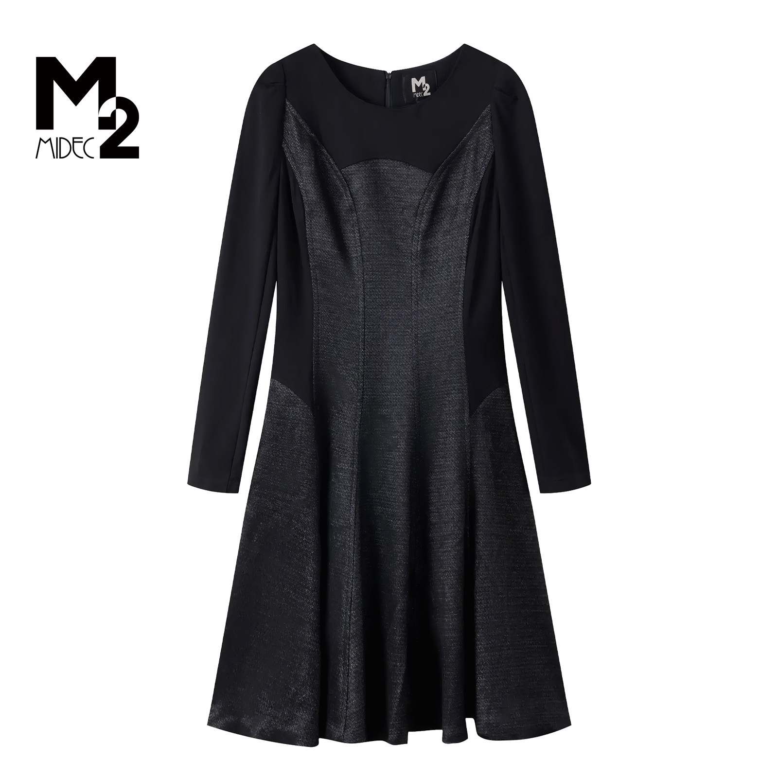 M2折扣店春秋黑色连衣裙女长袖修身气质A字裙成熟风别致裙子