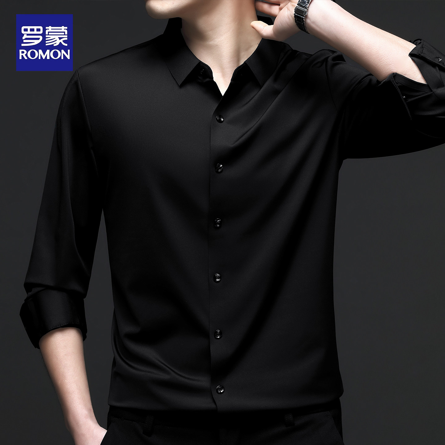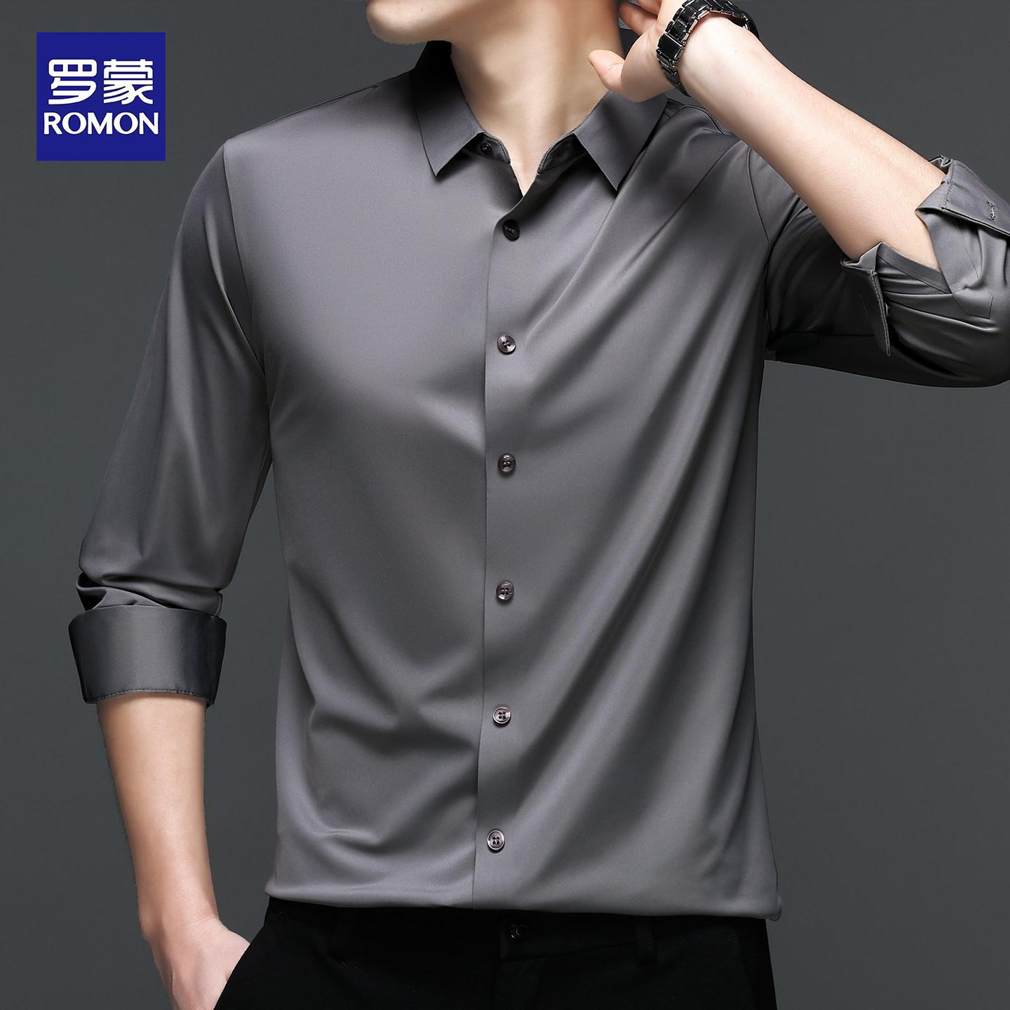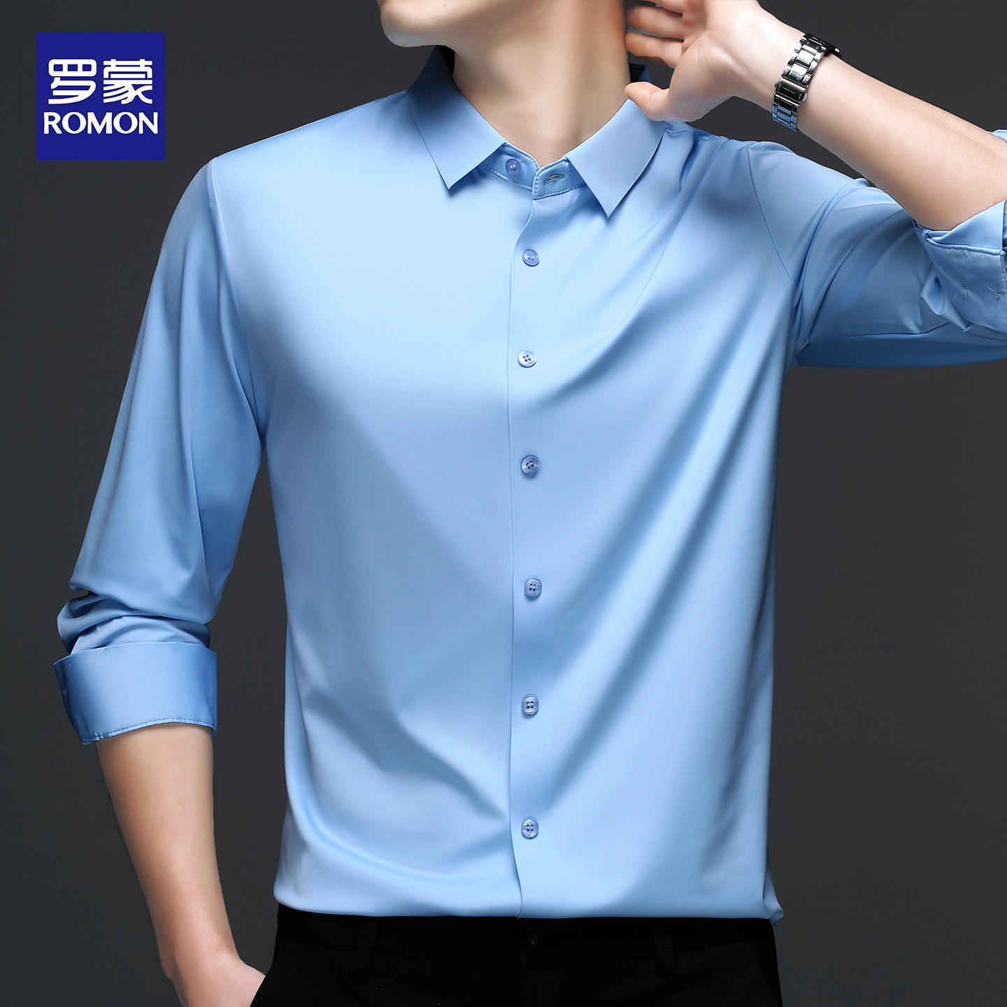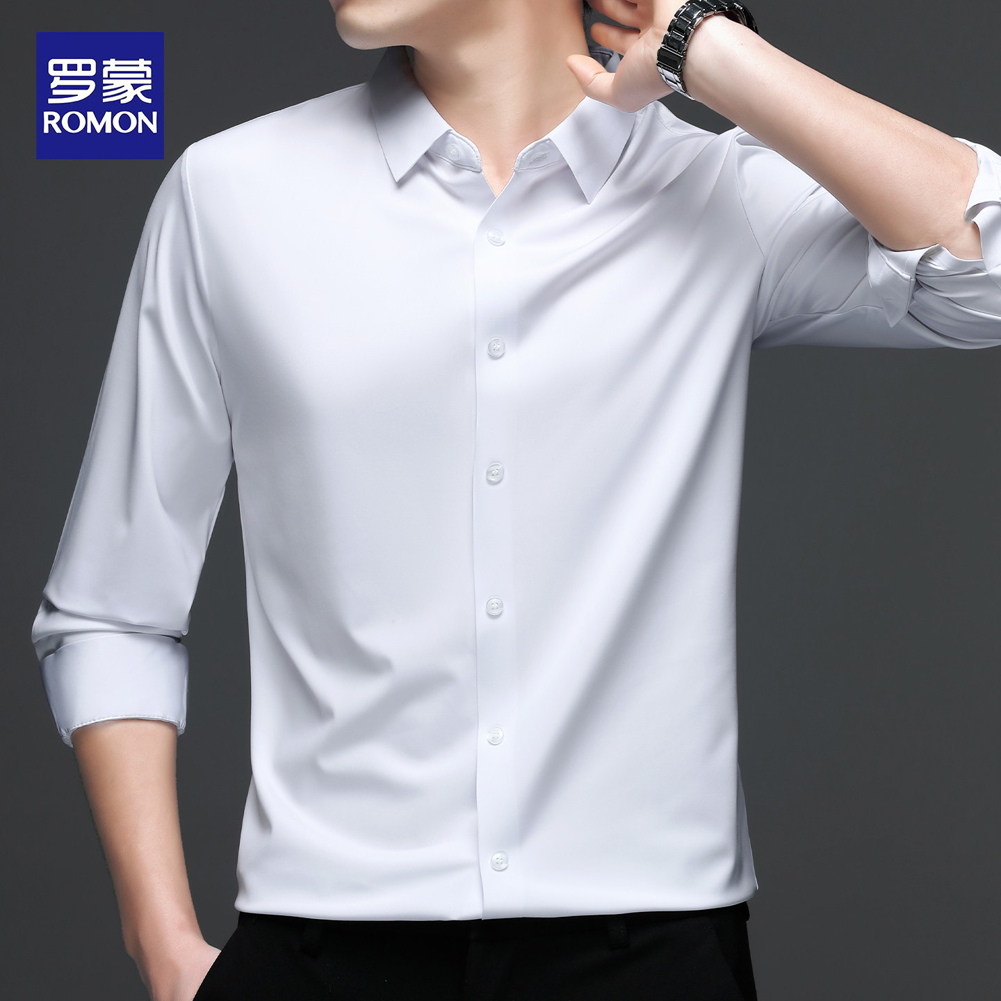 罗蒙男士长袖衬衫2026春秋新款商务休闲抗皱免烫无痕职业纯色衬衣