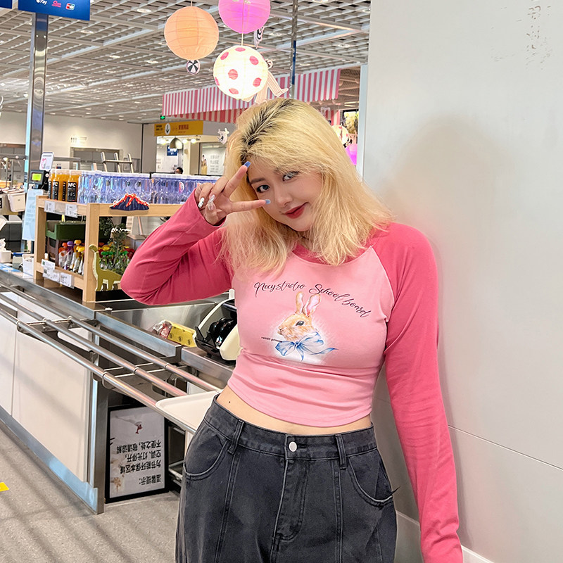 --------------------- LTGIRL纯欲风卡通印花胖MM长袖上衣辣妹露脐短款修身显瘦打底T恤 【原售价】99元 【现售价】26.1元 【推荐理由】