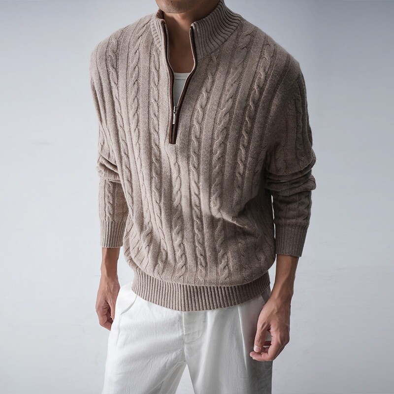 SEE ALSO『羊皮山羊绒』美式复古半拉链针织衫老钱冬季绞花毛衣男