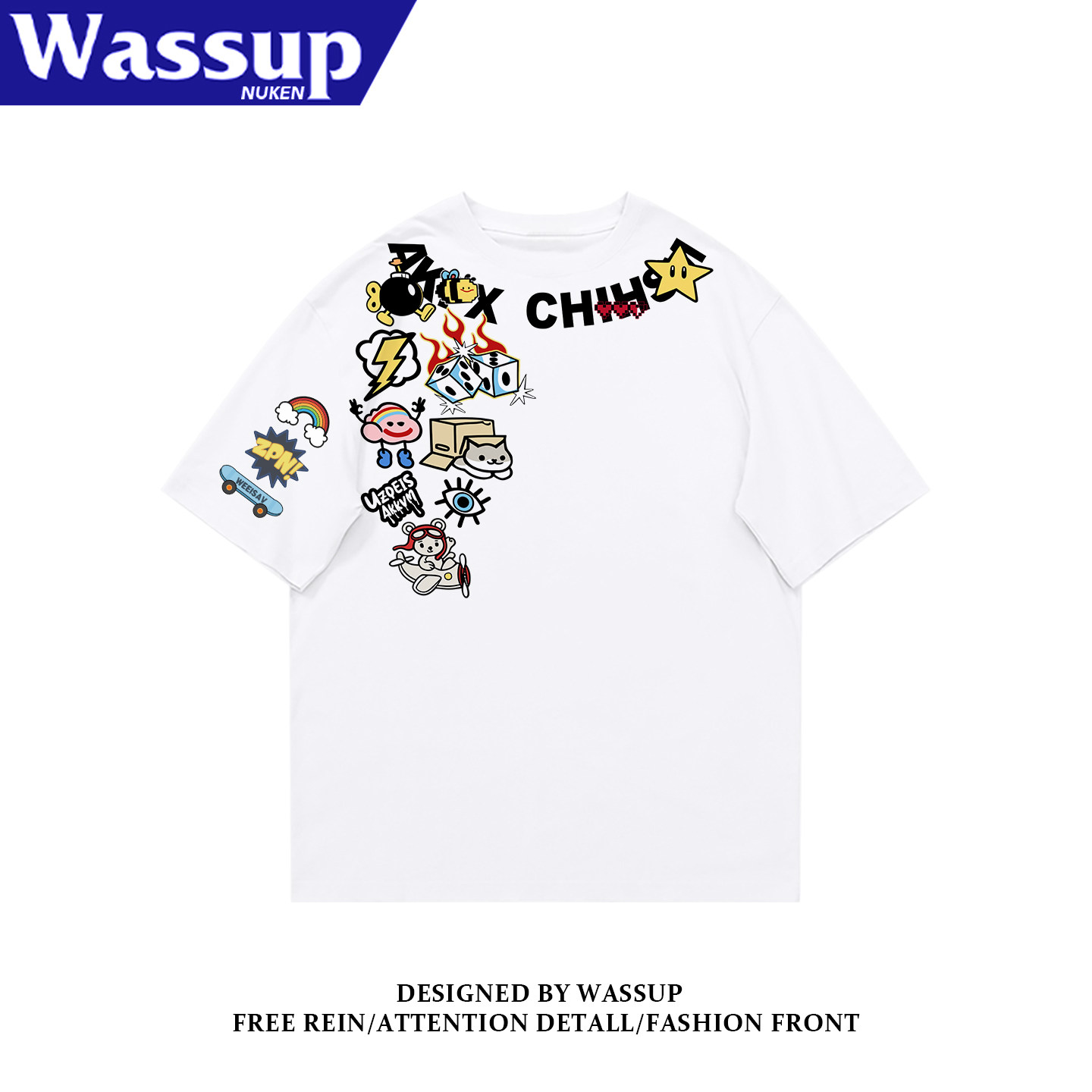 --------------------- WASSUP国潮牌原创美式短袖男纯棉街头字母印花小众痞帅夏季半袖潮 【原售价】79.8元 【现售价】43.8元 【推荐理由】