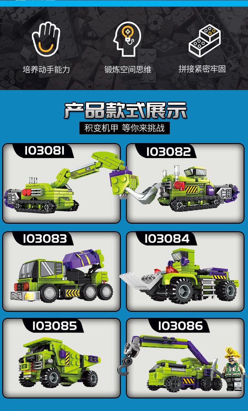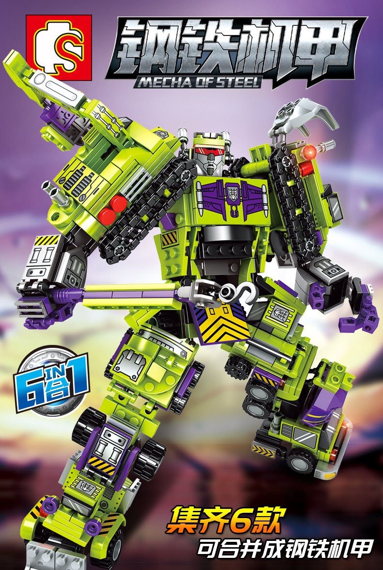淘宝森宝103081-086钢铁机甲积变大力神6合1男孩拼插拼装积木玩具套装