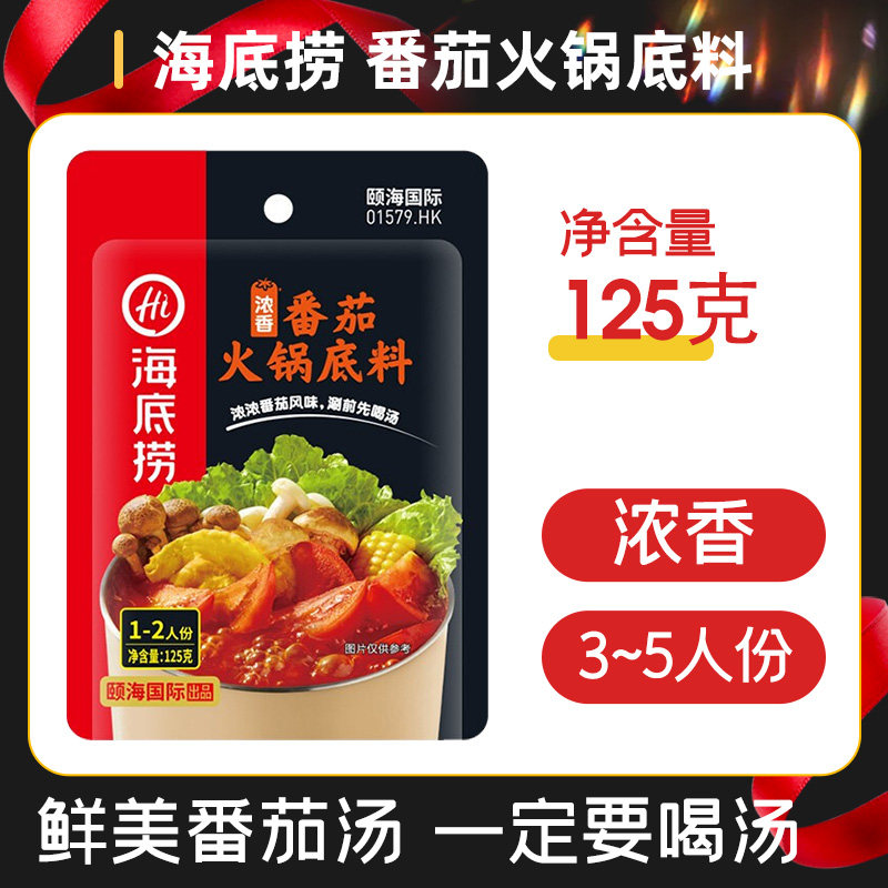 --------------------- 海底捞浓香番茄火锅料125g火锅底料小包装一人份家用方便清汤锅底 【原售价】57.7元 【现售价】6.9元 【推荐理由】
