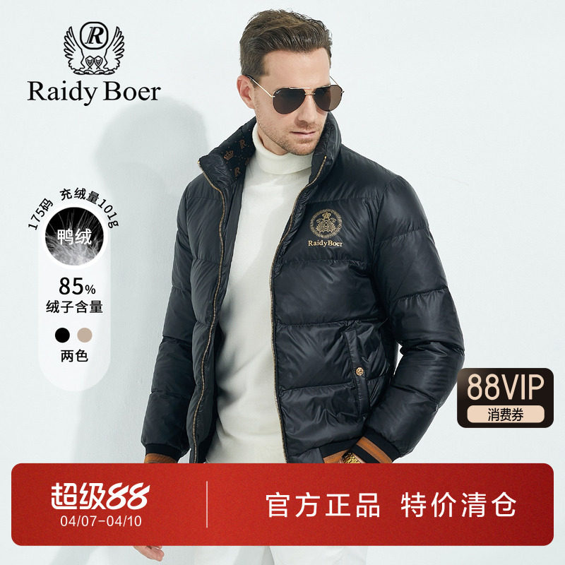 雷迪波尔男士保暖羽绒服2023秋冬季新款立领休闲鸭绒外套潮流男装