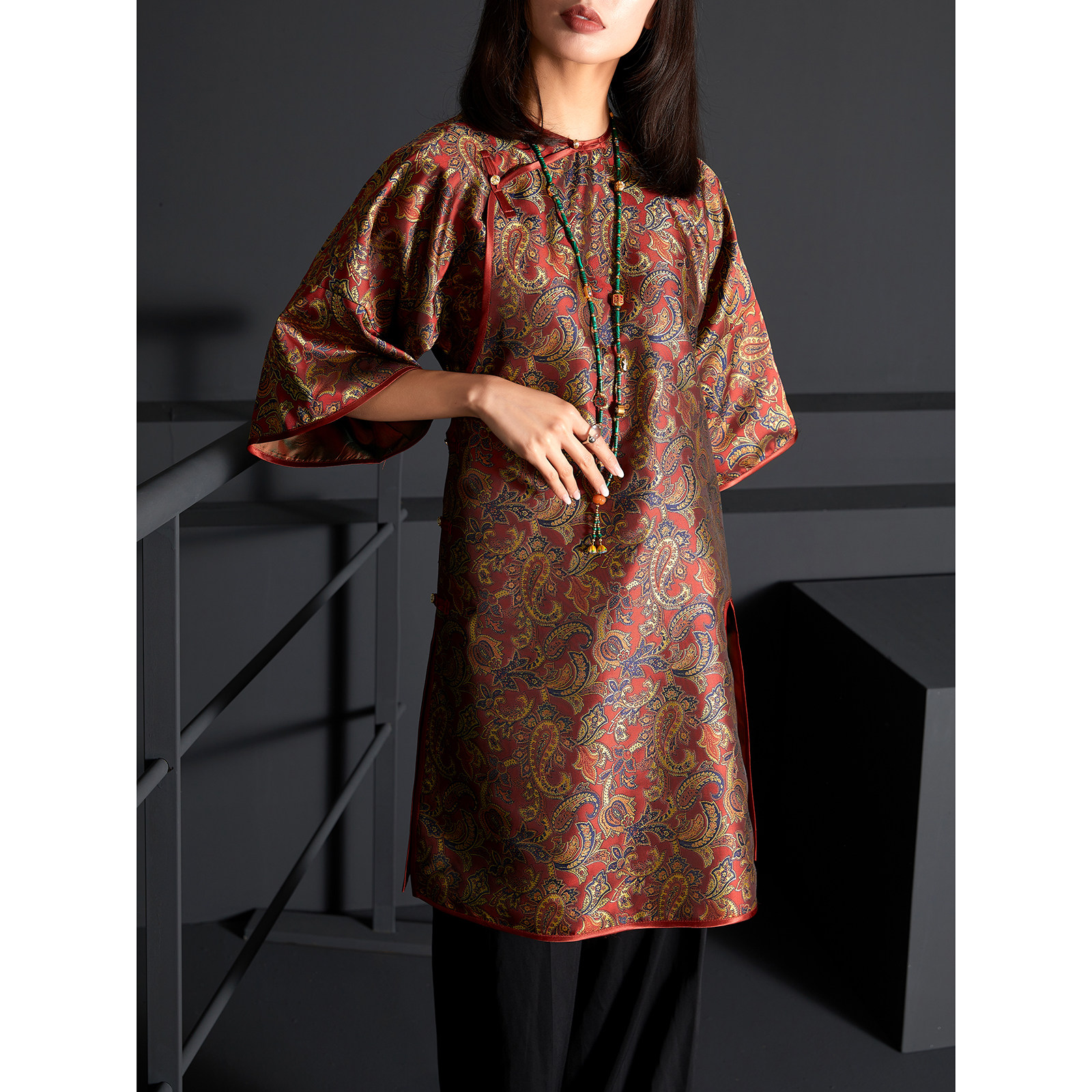 --------------------- 扶郎2024原创新中式 提花凤尾 时髦 倒大袖改良唐装 晚清开襟旗袍 【原售价】499元 【现售价】268元 【推荐理由】