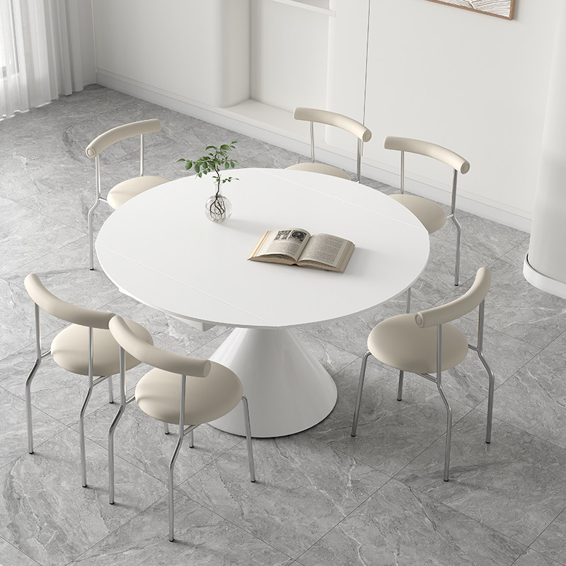 华尔兹餐桌方变圆两用桌子旋转伸缩折叠奶油风纯白色哑光岩板餐桌