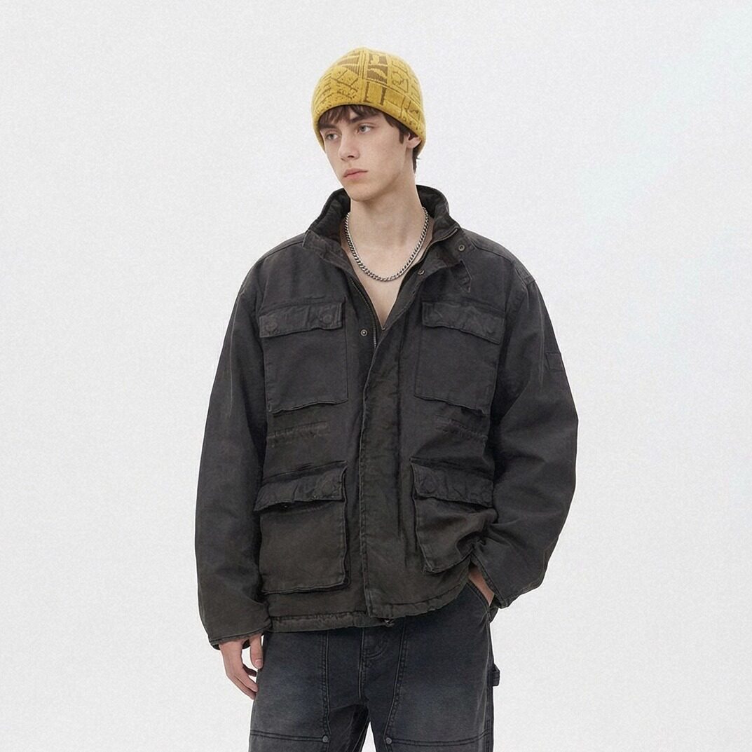 ATHIRI 美式复古猎装M65洗水做旧涂鸦外套宽松多口袋连帽工装夹克