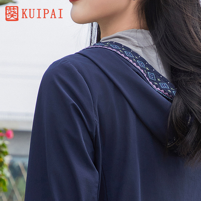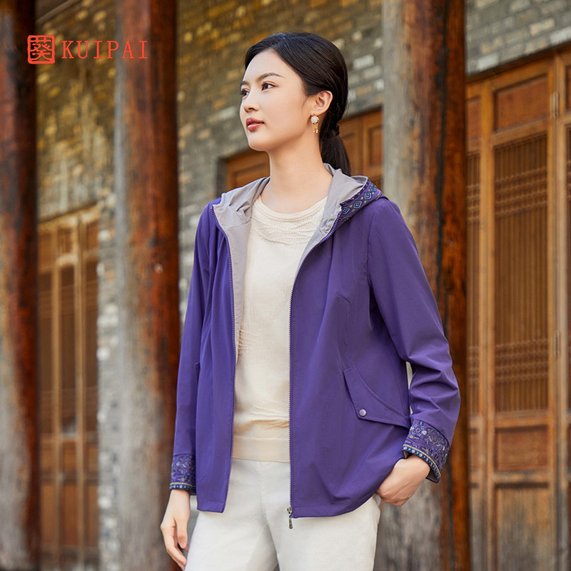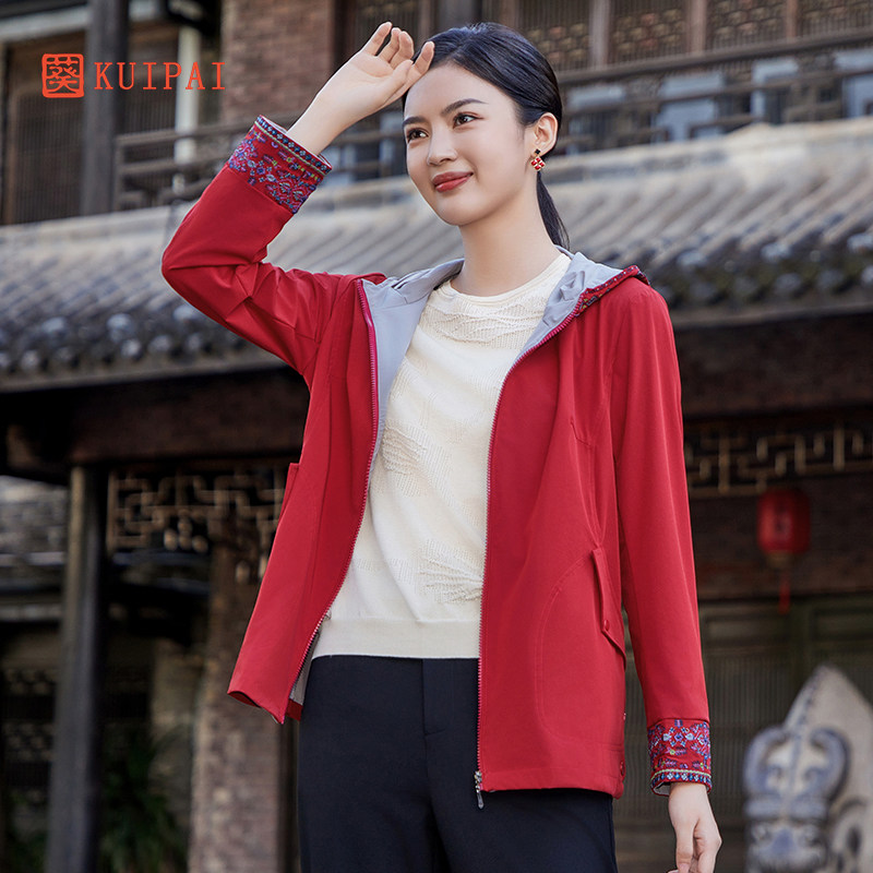 淘宝葵春秋中年妈妈连帽风衣外套百搭刺绣打籽绣国潮新中式夹克外套