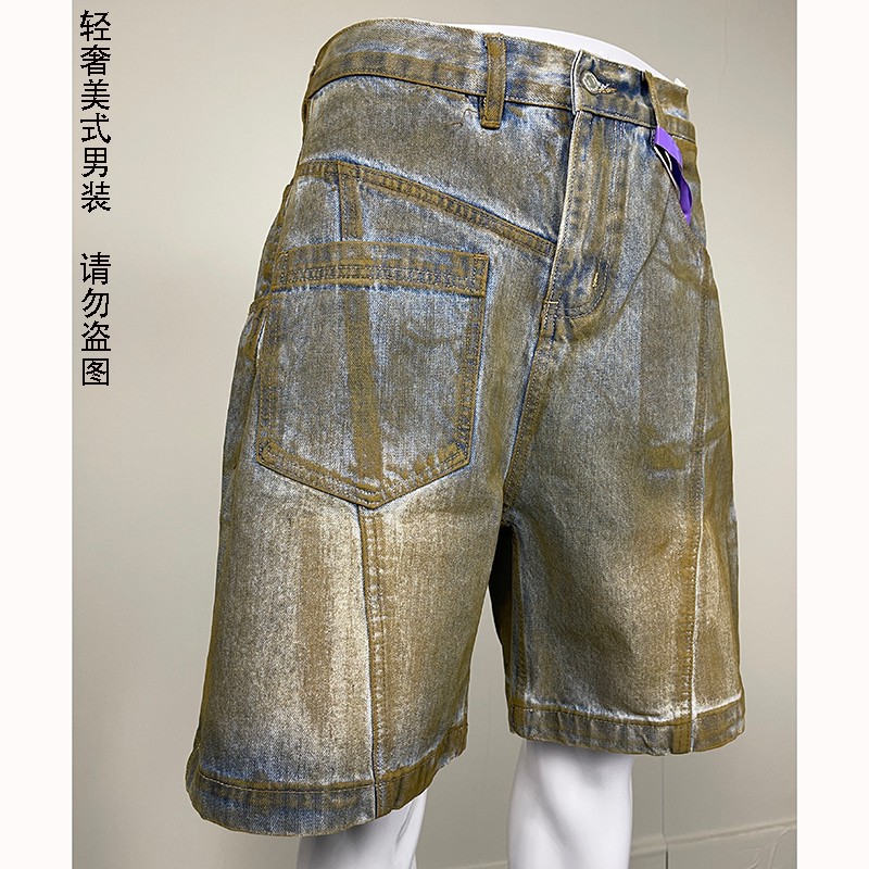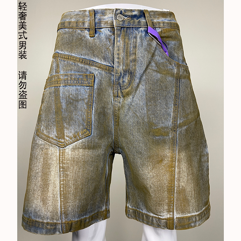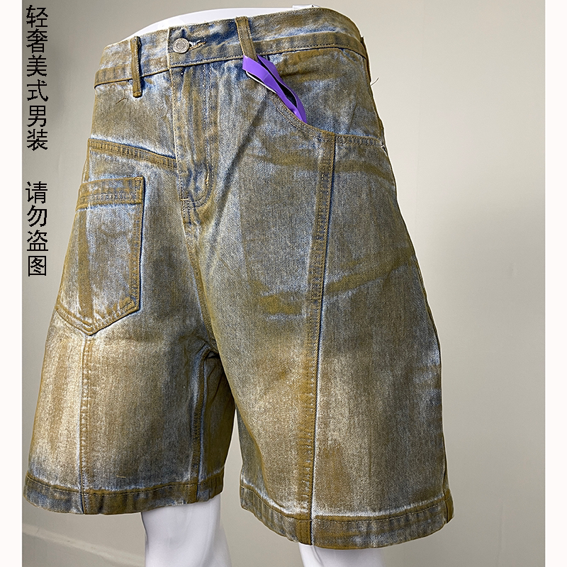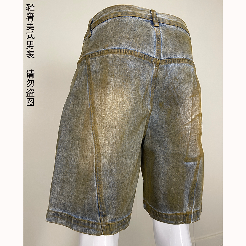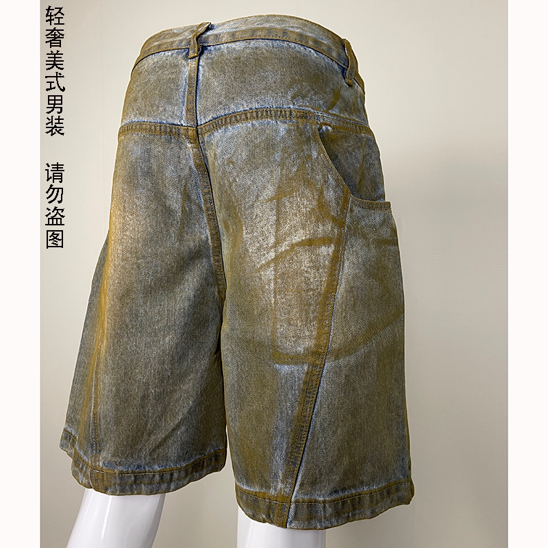 淘宝巴黎风潮牌美式复古做旧脏洗牛仔裤短裤男宽松工装短裤春夏街头感