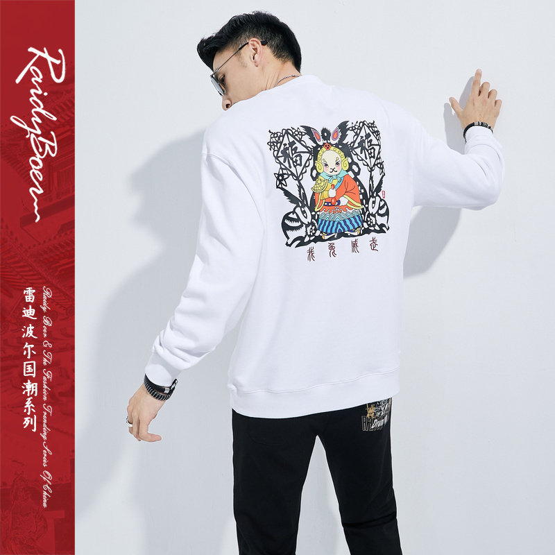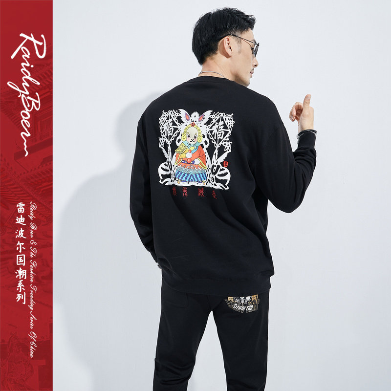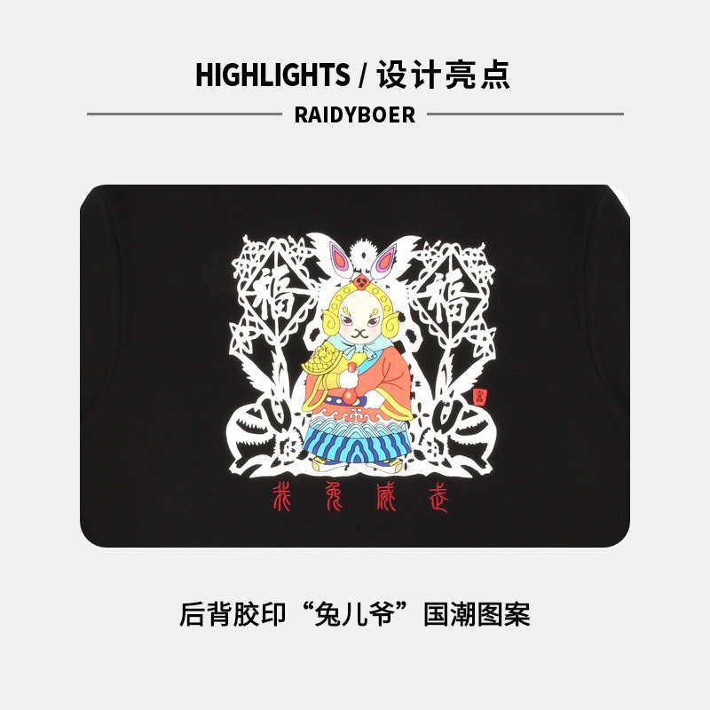 Raidy Boer/雷迪波尔男装国潮秋冬胶印说唱俑兔儿爷棉卫衣6672
