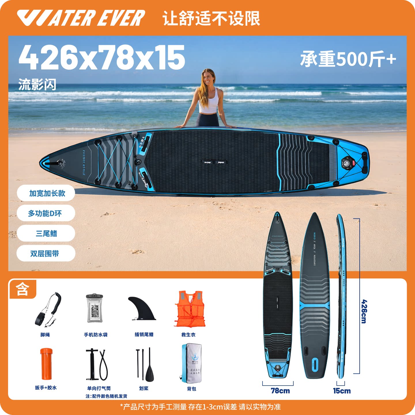 waterever桨板站立充气双层加厚冲浪户外竞速浆板SUP钓鱼水上划水