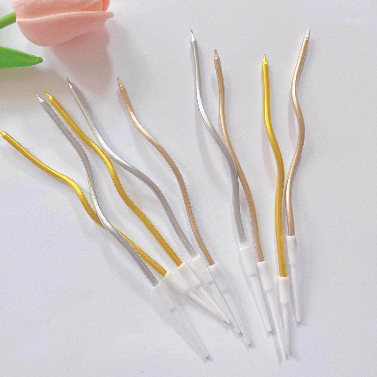 烘焙店生日蜡烛单支独立装曲线蜡烛银色派对蛋糕装饰插件摆件螺旋