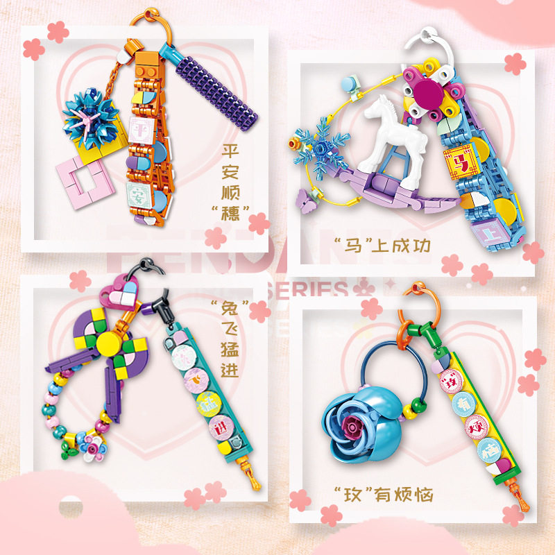 中国积木女孩DIY手工拼装钥匙扣挂饰品创意儿童学生玩具生日礼物